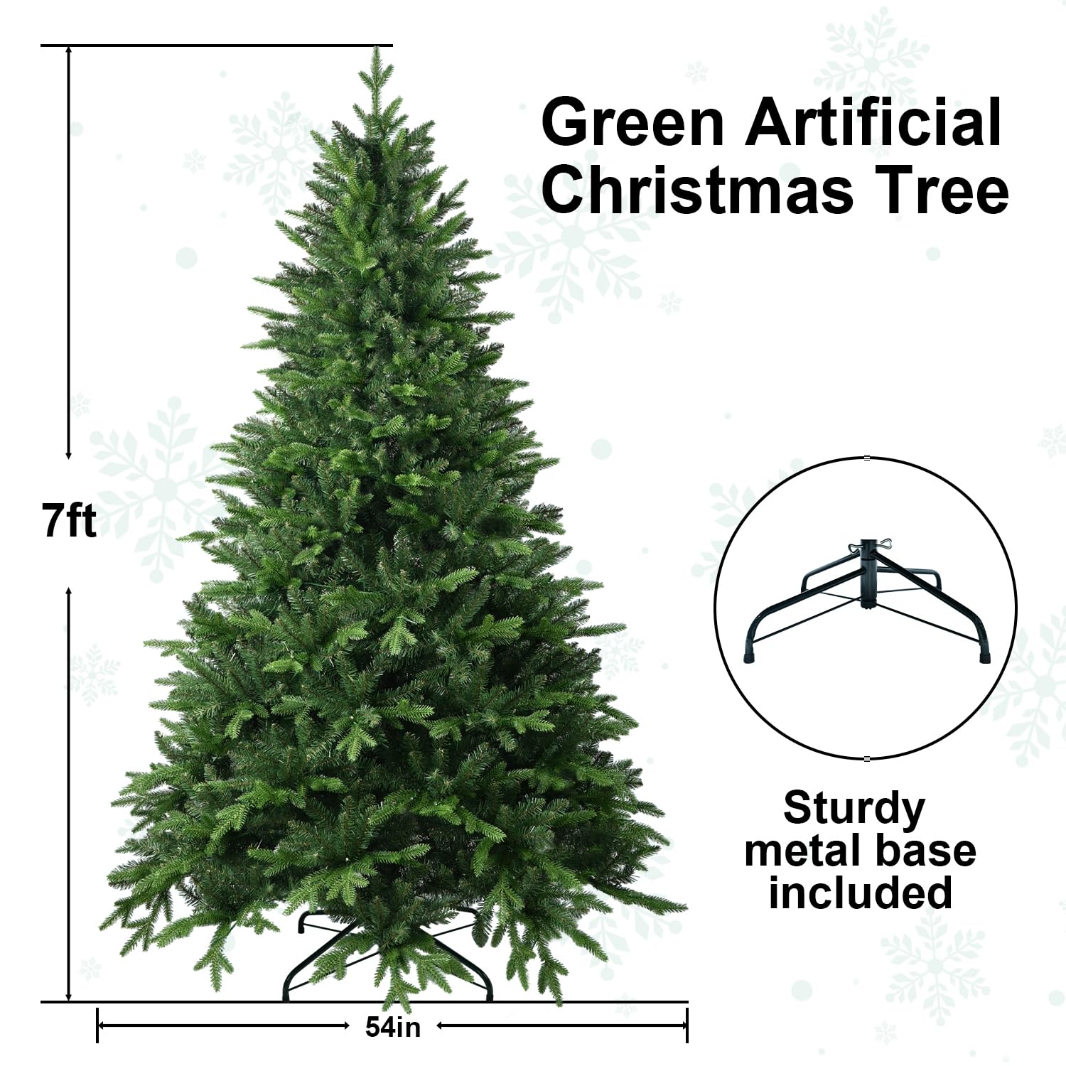 7 FT Artificial Christmas Tree with 1971 PE&PVC Mixed Branch Tips, Unlit Hinged Premium Spruce Fake Xmas Trees, Green, Foldable Base