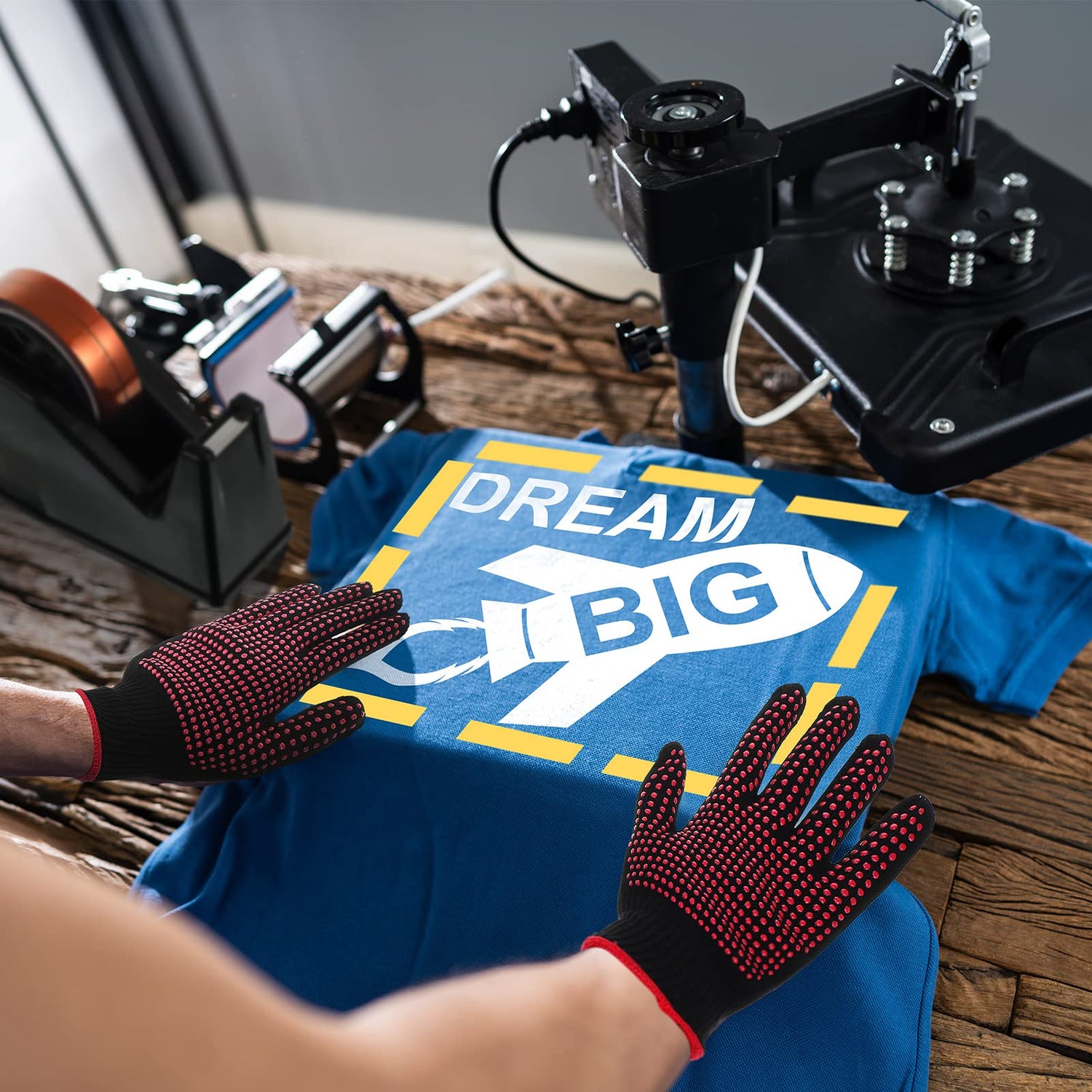 7 Pcs Heat Tape Dispenser Sublimation Set Tape Roll Dispenser with Weighted Nonskid Base and 4 Pieces Heat Transfer Tapes 2 Pieces Heat Resistant Gloves Heat Resistant Silicone Gloves (Black)