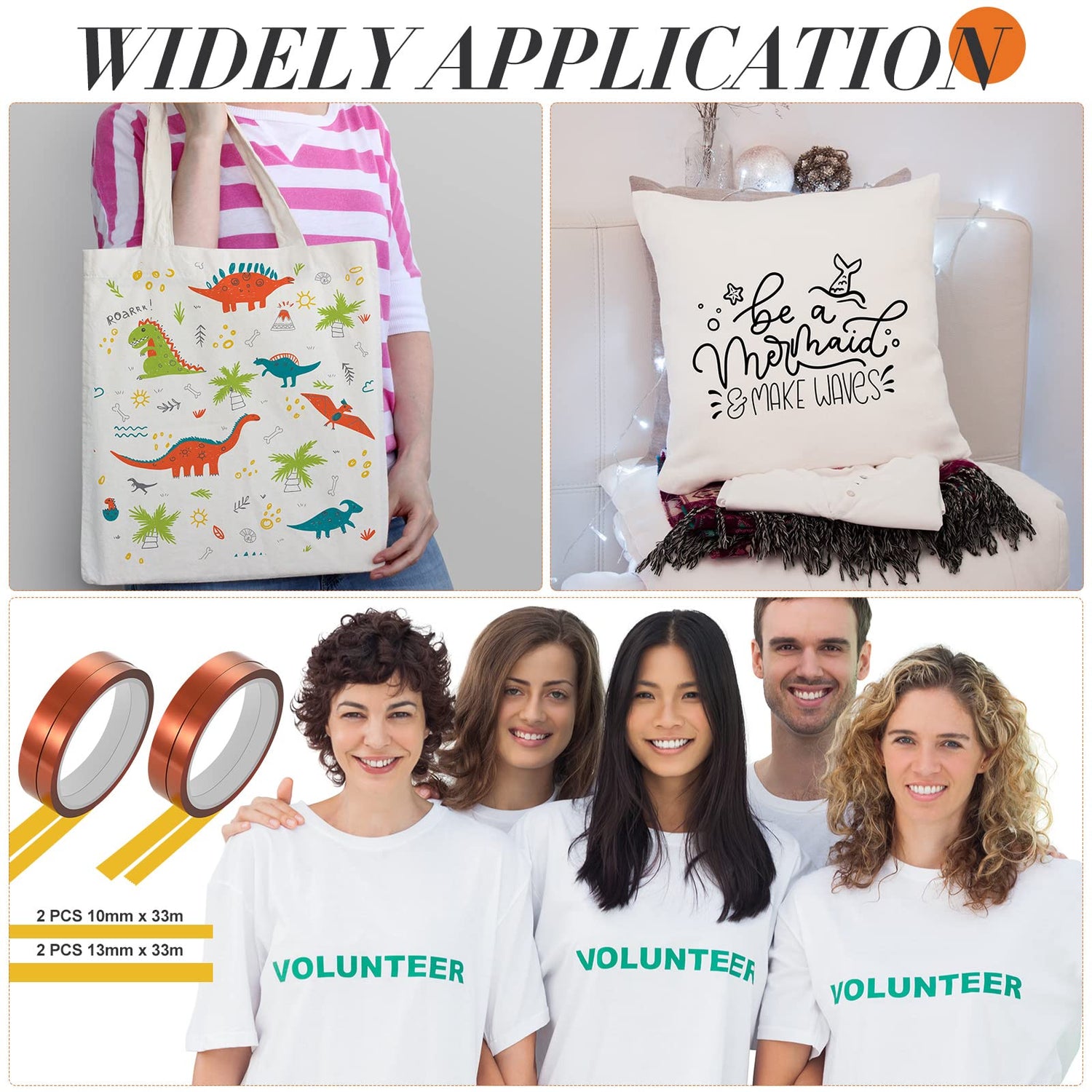 - Heat Transfer Tape: these tapes have 2 sizes, width in approx. 10 mm/ 0.39 inches, and in approx. 13 mm/ 0.51 inches, 2 rolls of each size, to satisfy your different needs