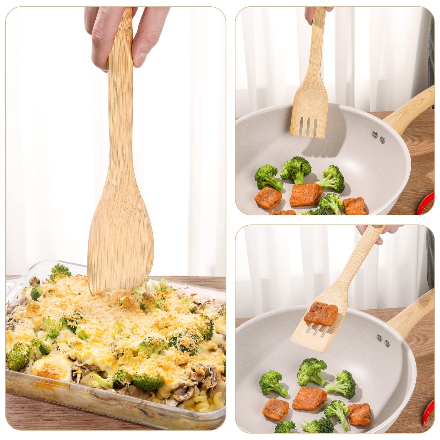 - 【 Easy to clean 】Our bamboo kitchenware sets are made from 100% natural bamboo, healthy and safe, non-stick pans, washed by hand in warm or soapy water, and thoroughly dry for storage, please do not soak bamboo shovels in the dishwasher, and regularly care for these wooden spoons with oil.