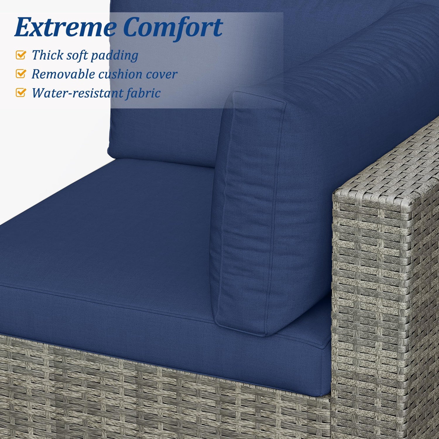 - Comfy Cushions: Designed for optimum relaxation, soft foam-filled cushions provide a plush seating experience for you and your guests. The water-resistant and removable cushion covers ensure that your cushions are well-protected and easy to maintain.
