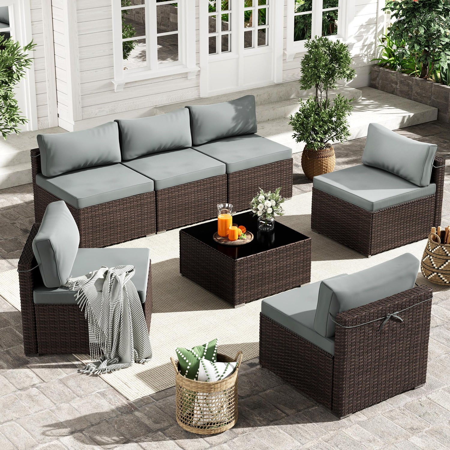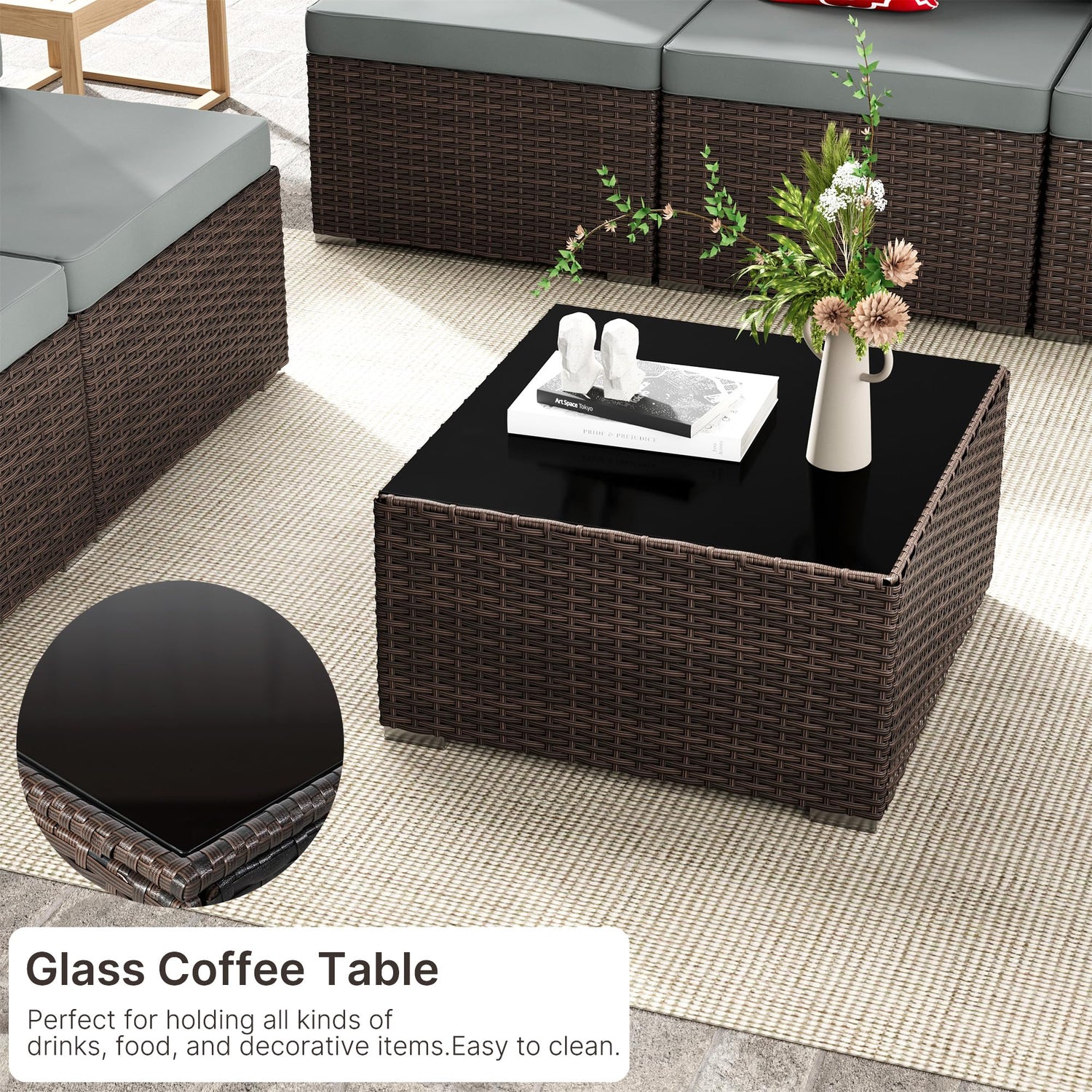 - 【Modular & Lightweight Design】 This outdoor sectional furniture set features a modular layout that can be freely rearranged to fit patios, balconies, gardens, or poolside spaces. Lightweight rattan makes each piece easy to move and adjust as needed.