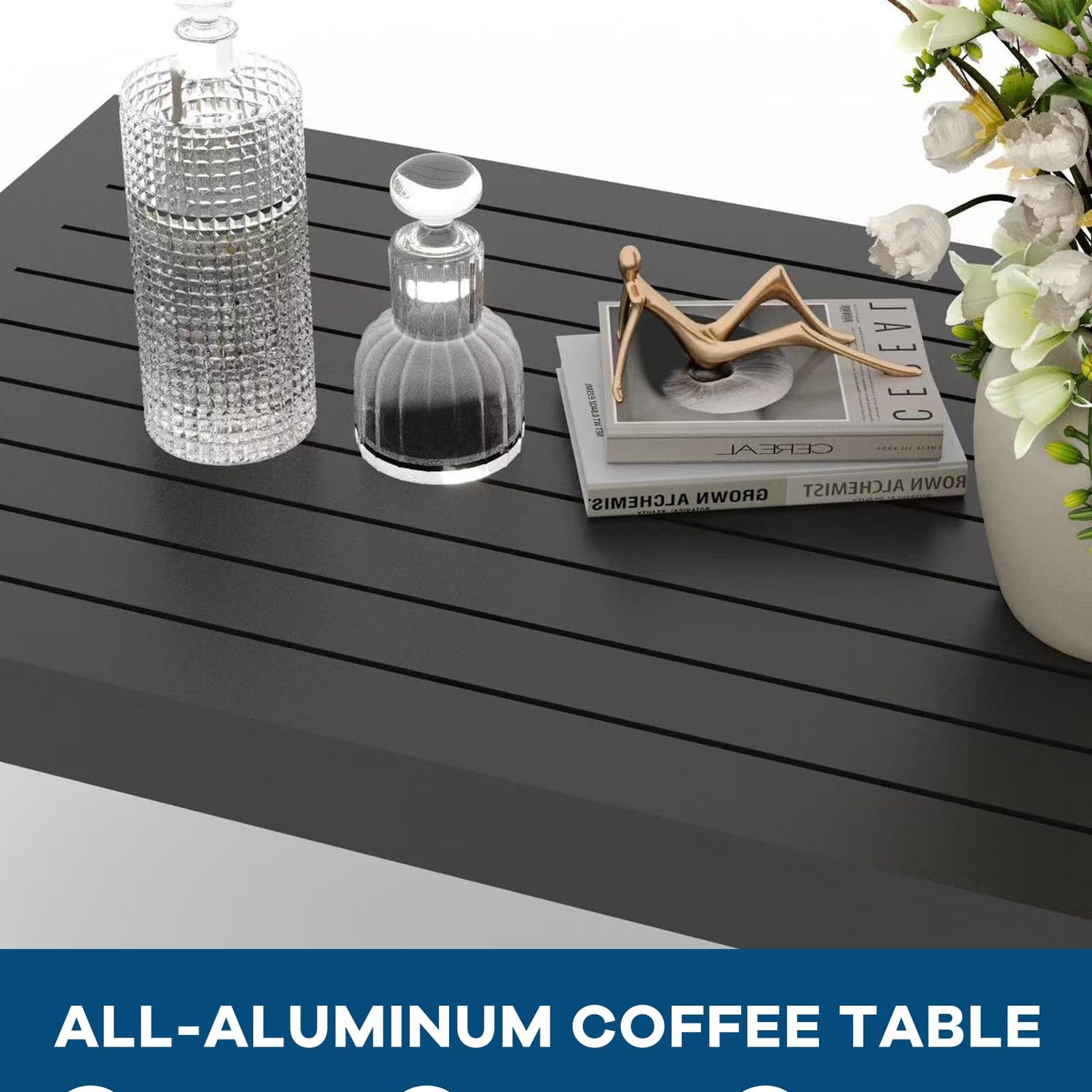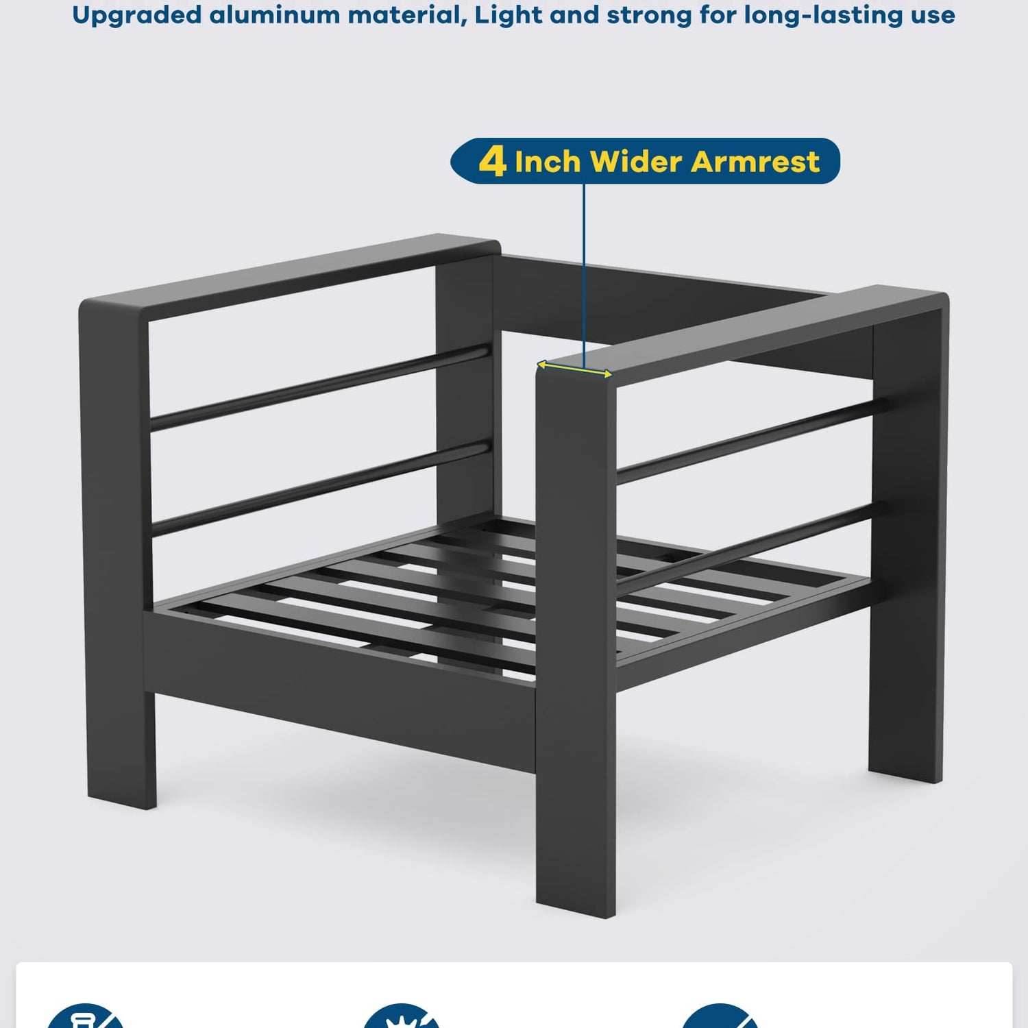 - ALL-ALUMINUM BUILD: Engineered with aluminum frames, this patio furniture set resists rust, UV damage, and coastal humidity. Sturdy joints and reinforced legs ensure stability on uneven decks, grassy lawns, or poolside pavers.