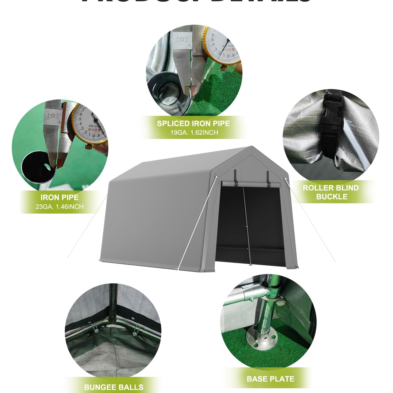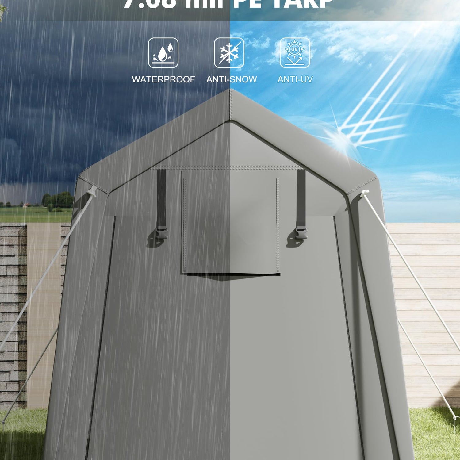 7 x 12 ft Portable Carport, Storage Shed with Heavy Duty Waterproof Tarp & 2 Roll-Up Zipper Doors, Ideal Tent for Motorcycles, Bikes, Garden Tools, and Firewood