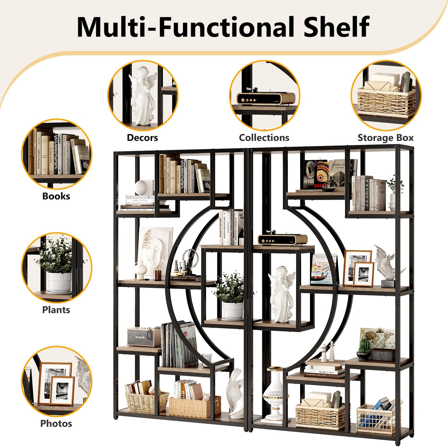- 【Spacious & Versatile Storage】With 18 open shelves (2-pack) and 79" total width, this set offers 40% more storage than standard bookcases. Organize books, photo frames, office supplies, or even use as a room divider. Adjustable shelf heights accommodate tall items like printers or vases.