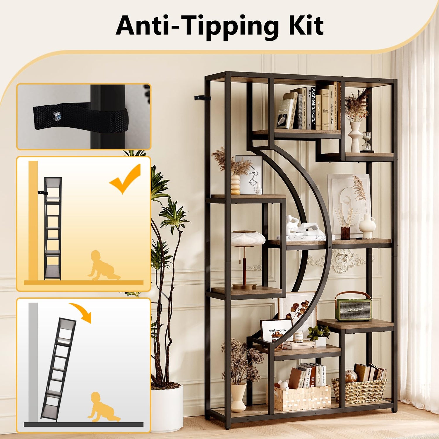 - 【Industrial Farmhouse Design】Crafted with a sleek black metal frame and scratch-resistant grey reclaimed wood, this bookshelf blends industrial geometric style with farmhouse charm. The half-moon open design adds a modern touch, perfect for displaying books, decor, and more in living rooms, offices, or bedrooms.