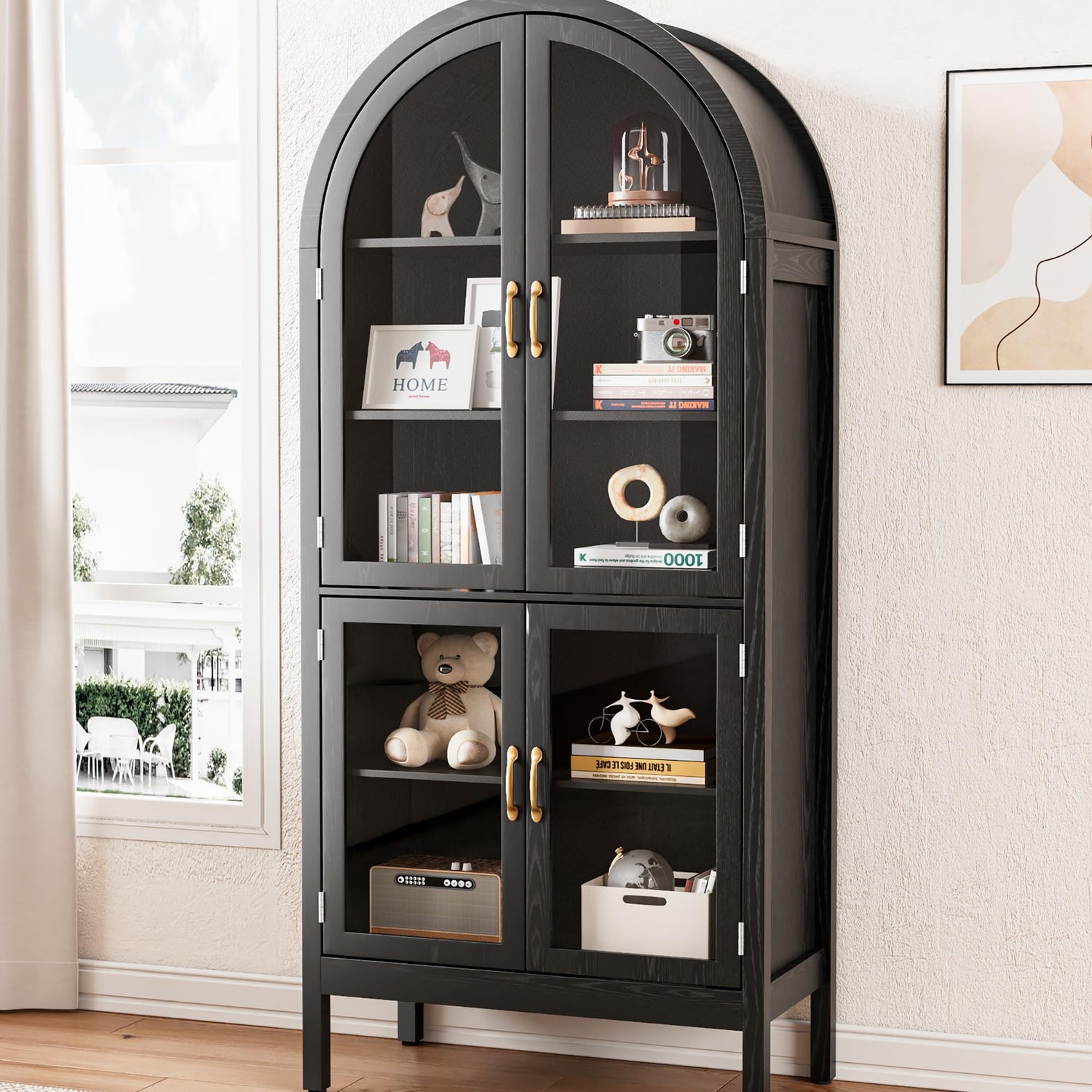 70.9'' Tall Arched Display Cabinet with Acrylic Glass Doors, Modern 5-Tier Arched Bookcase, Kitchen Pantry Storage Cabinet Curio Cabinets for Living Dining Room (Black, 31.5‘’W)