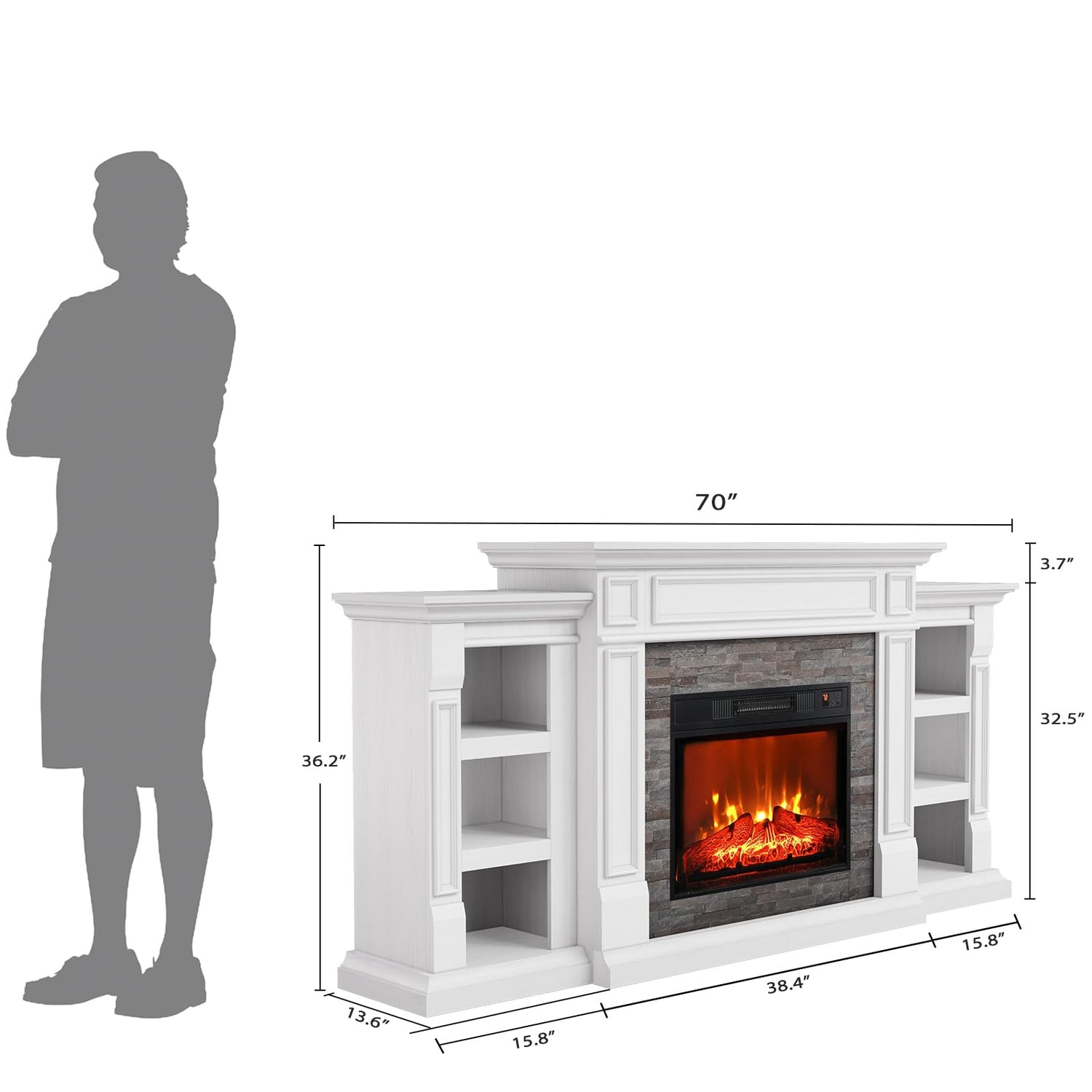 - 【Dimensions】The fireplace with mantel dimension: 13.6''D x 70''W x 36.2''H.