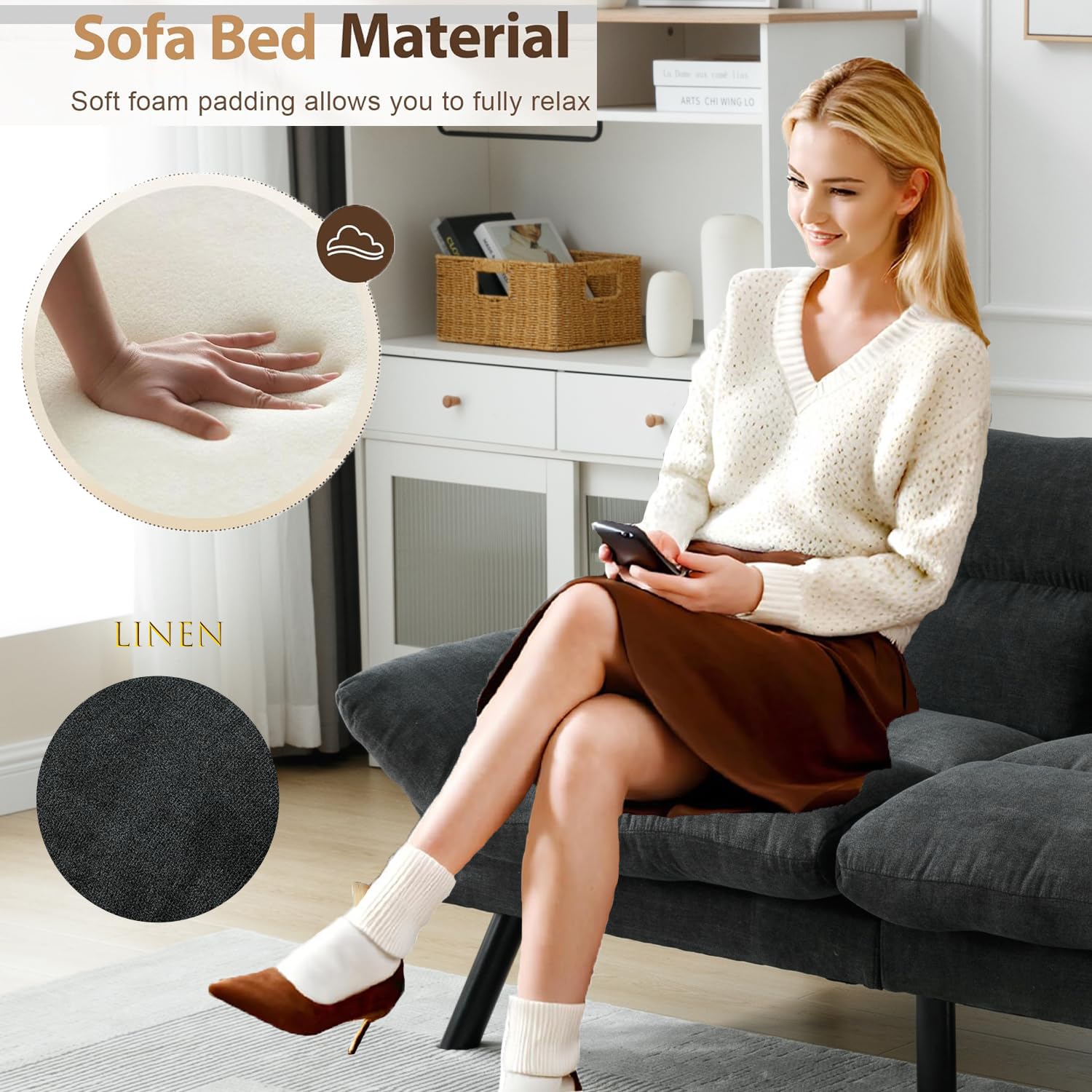 - 💖[Multi-angle Adjustable & Convertible Futon Sofa Bed]The backrest of the futon daybed is adjustable to 90-180°. Thick memory foam with spring seat sleeper can be used as a pillow or footrest, or lay flat to accommodate more people. Push-pull design, the futon sofa can be easily converted into a bed. Weight Capacity: 600 lbs.