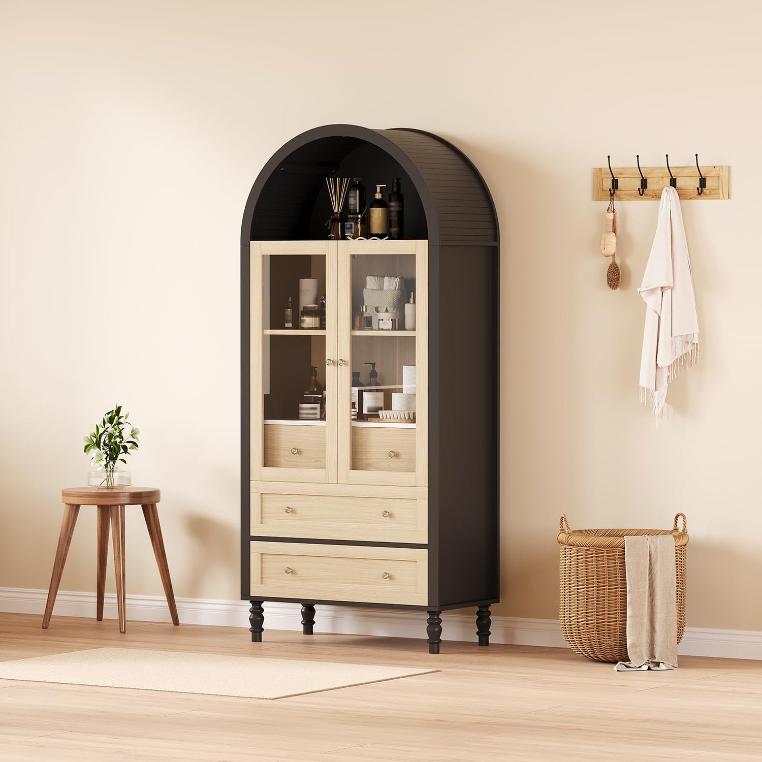 - 【Boho-Chic Arched Design for Elegant Storage】– This 70 in tall arched cabinet blends timeless boho charm with modern functionality. The distinctive arched top and tempered glass doors add a touch of sophistication to any room, while allowing you to showcase your favorite pantry items, glassware, or decor. Perfect for farmhouse, modern, or eclectic interiors in kitchens, dining rooms, or living spaces.