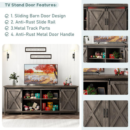 70In Farmhouse TV Stands for 70 75 80inch TV w/Adjustable Shelves,Sliding Barn Door.Rustic Wooden Entertainment Center,TV Console Grey Cabinet w/Storage for Bedroom Living Room(Dark Grey 70in)
