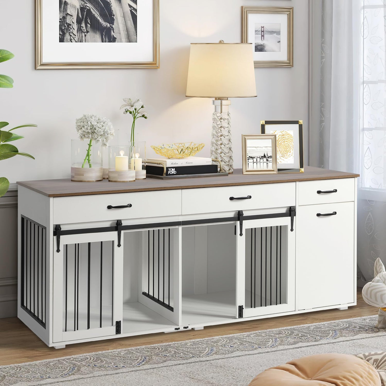 - Modern Furniture Dog Crate: This dog crate with divider not only provides a safe and comfortable space for your beloved pets but also doubles as a functional side table or display shelf, suitable for a variety of home decor styles