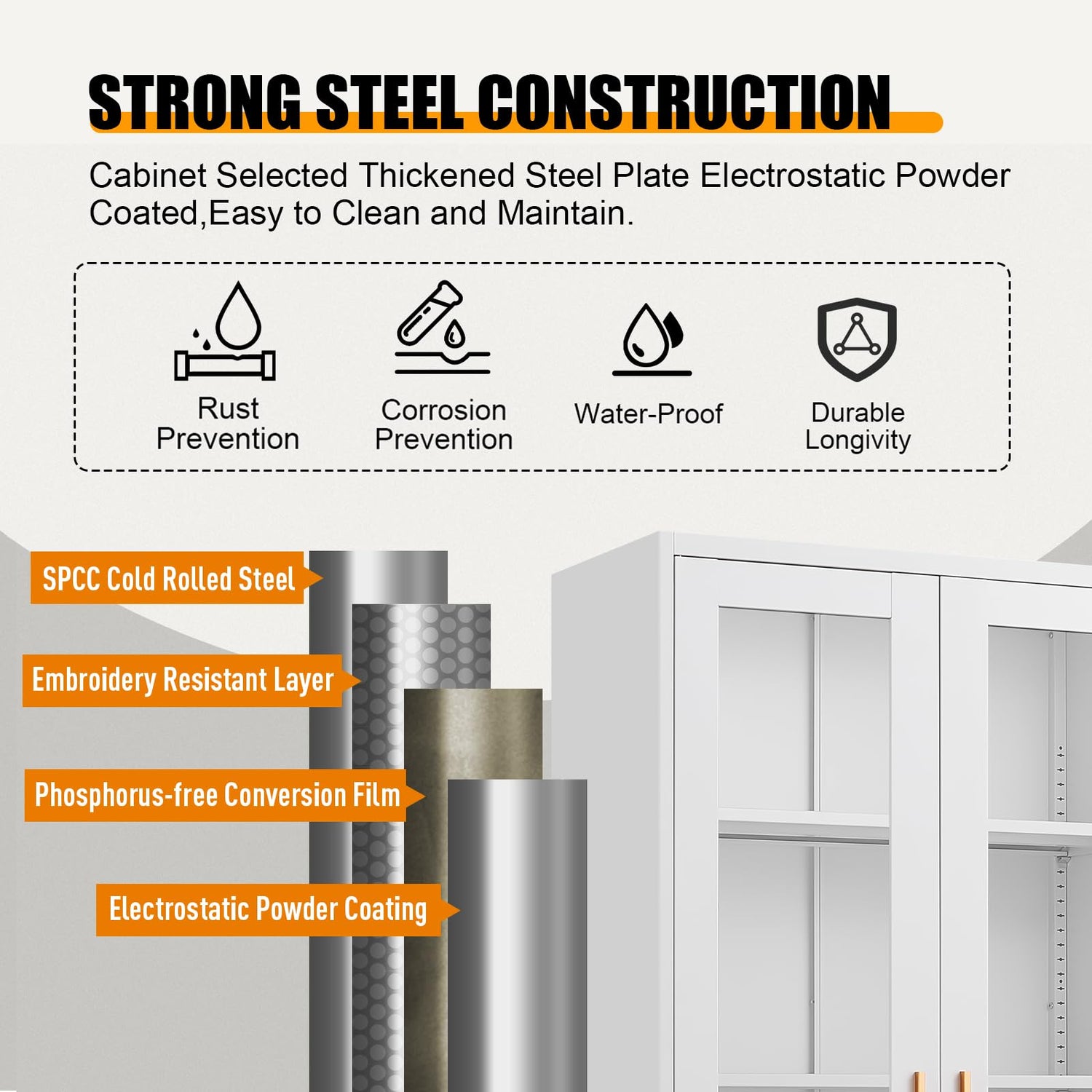 - Security Door Lock System: The kitchen storage cabinet has 2 hinged doors with a 180 degree opening angle, and the tall metal cabinet adopts a three-point door lock to protect valuable items. This includes three keys, which can be used by co owners or as backup keys in case of loss
