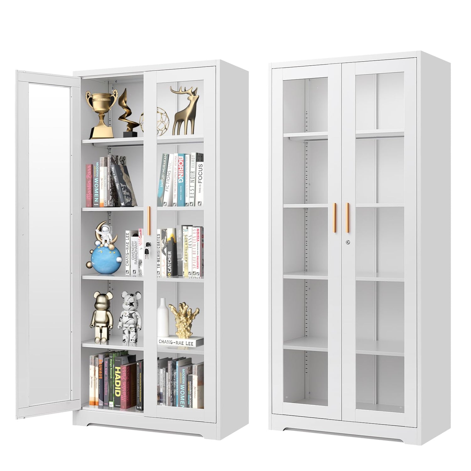 - Multi Functional: Modern and stylish design, the tall glass cabinets is used as a display cabinet for antiques, books, bookcases, etc. Featuring a glass door that protects items from dust, you can see your display clearly, enhancing the viewing experience. Suitable for kitchen, office, and hallway, used to organize your belongings
