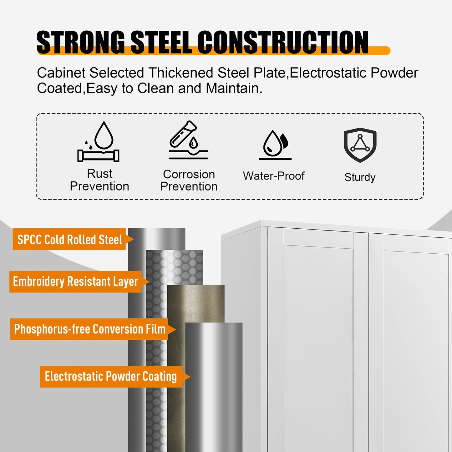 - Metal Storage Cabinet: The tall pantry cabinets is made of cold-rolled steel plate, with a powder coating process to prevent cracking and rusting, increasing the safety and stability of the product. Metal cabinets are sturdy, with easy to clean surfaces