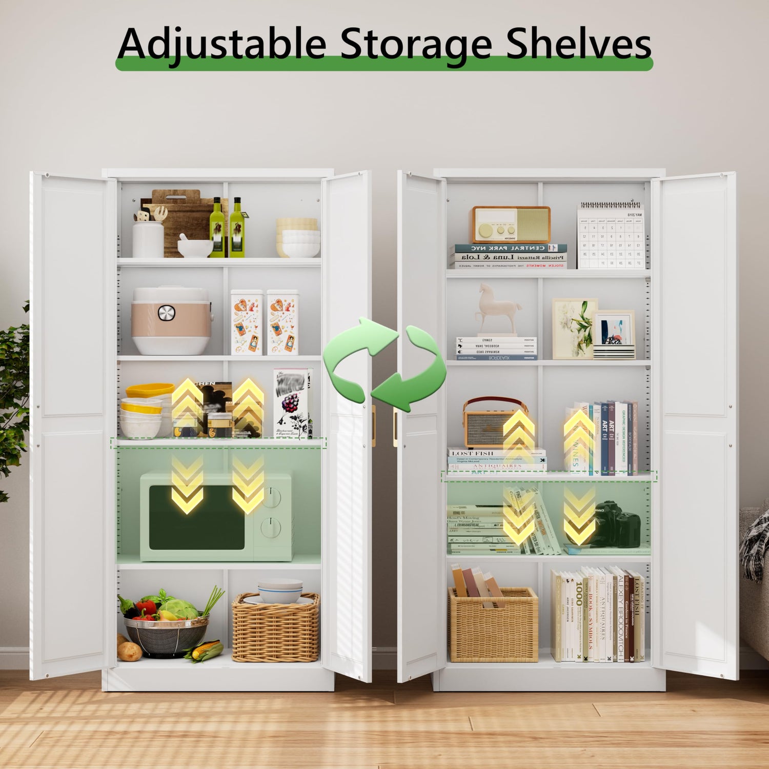 71" Kitchen Pantry Storage Cabinet,White Tall Storage Cabinet With Doors and Shelves,Metal Food Pantry Cabinets for kitchen storage,Freestanding Cupboard for Dining Living Room,Assemble Required