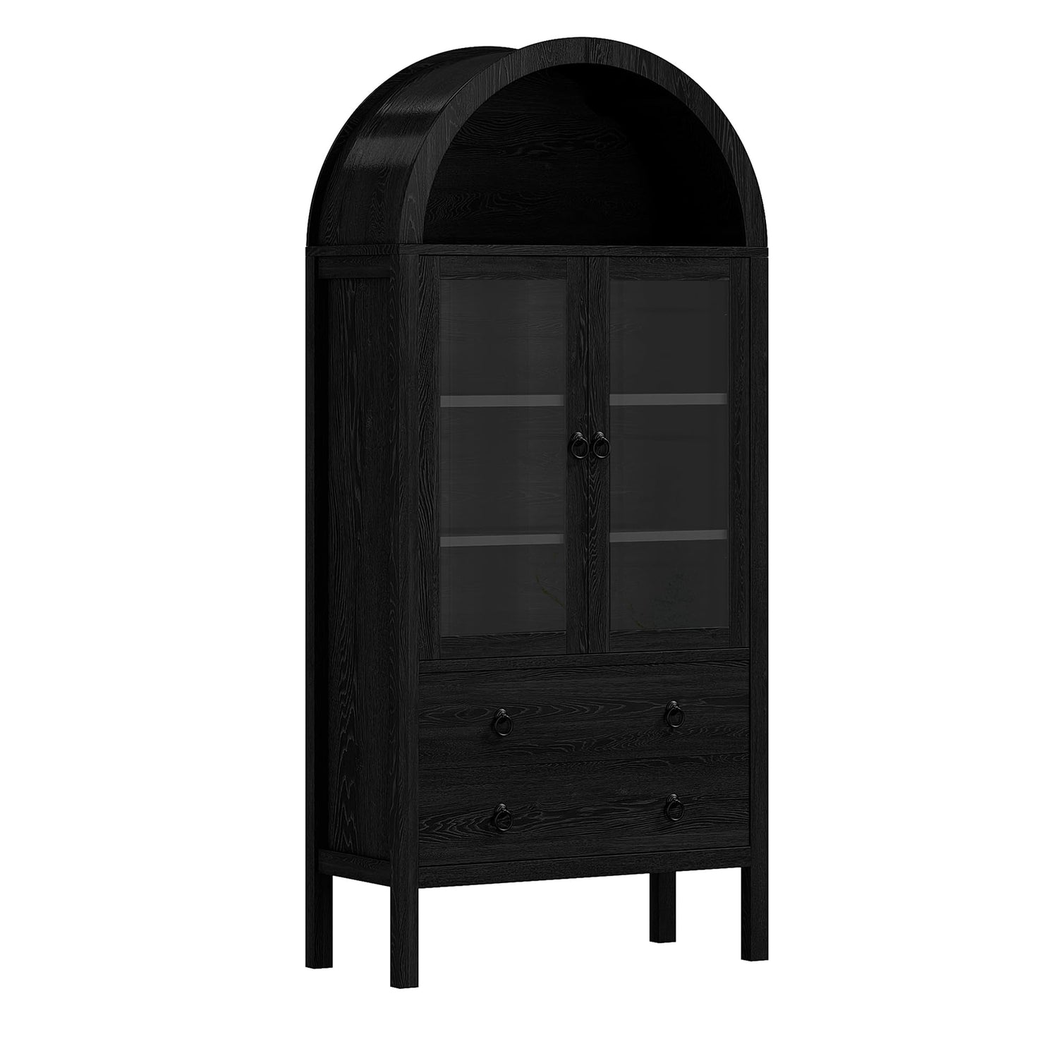 71'' Tall Arched Cabinet - Wood Kitchen Pantry, Farmhouse Arch Display Bookcase Hutch with 2 Large Drawers & Adjustable Shelves, Versatile Storage Furniture for Living Room Dining Room Bathroom, Black