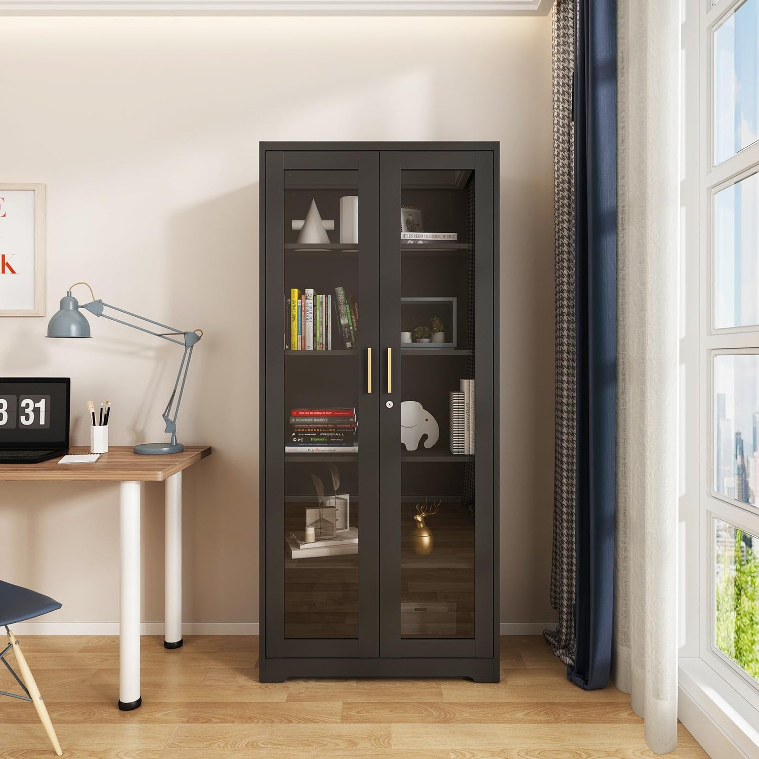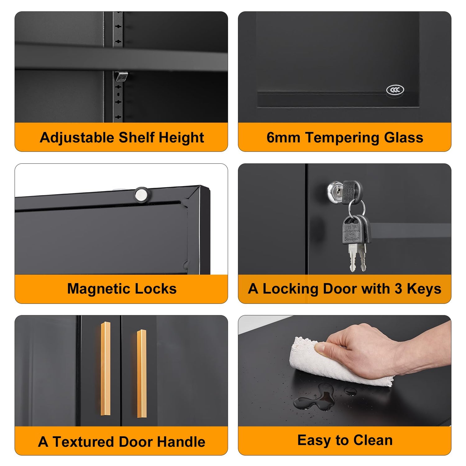 - High Quality: The metal cabinet is made of cold-rolled steel plate and coated with environmentally friendly paint on the surface, which can prevent cracking and increase the safety of the product. The kitchen cabinet is sturdy. Using high-quality glass doors to protect items from dust, you can clearly see your display