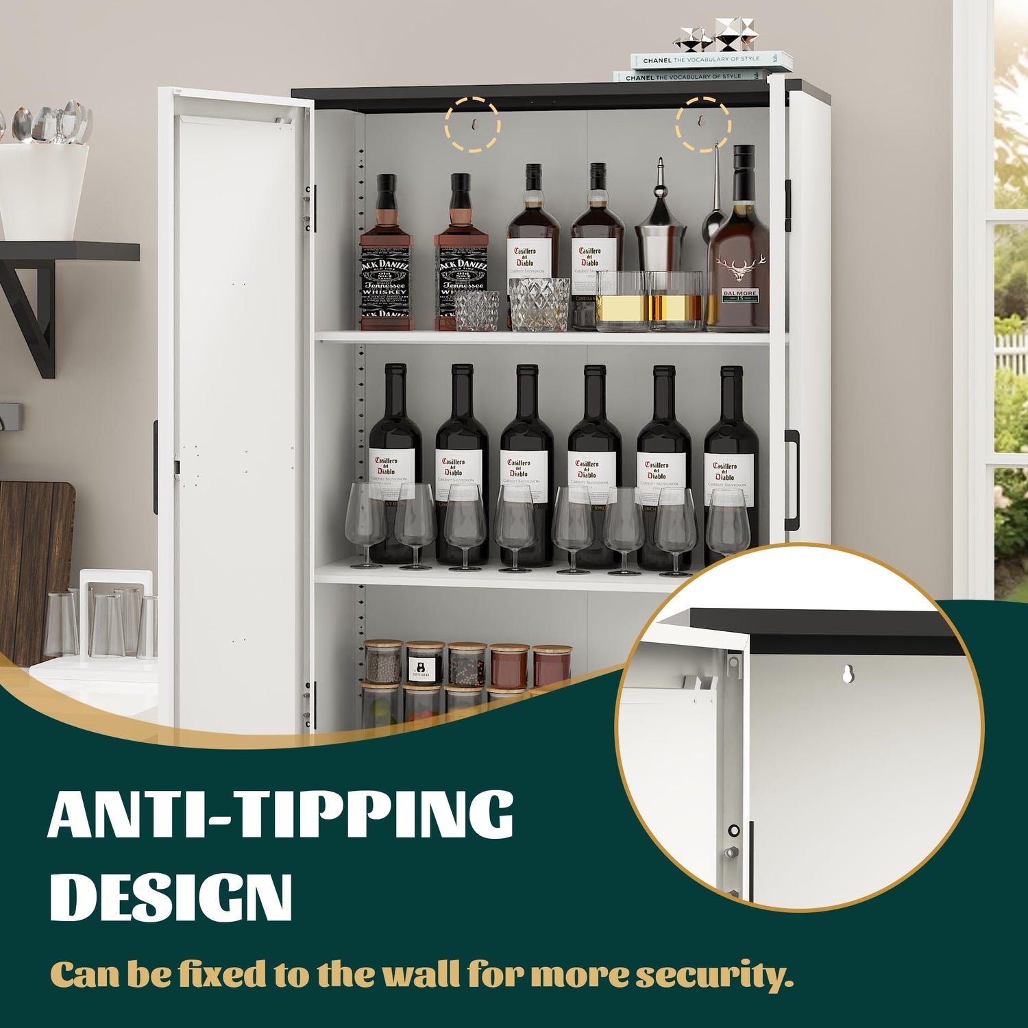 - Solid DESIGN: The metal storage cabinet is made of high quality cold rolled steel and have a sturdy frame and stable structure. This determines the excellent weight capacity of the kitchen hutch, which can store up to 740 pounds of items throughout. And the pantry cabinets for kitchen storage is equipped with an anti-tipping device, adding another layer of safety to the cabinet. Say goodbye to wobbly high storage cabinets, stability and safety are more assured.