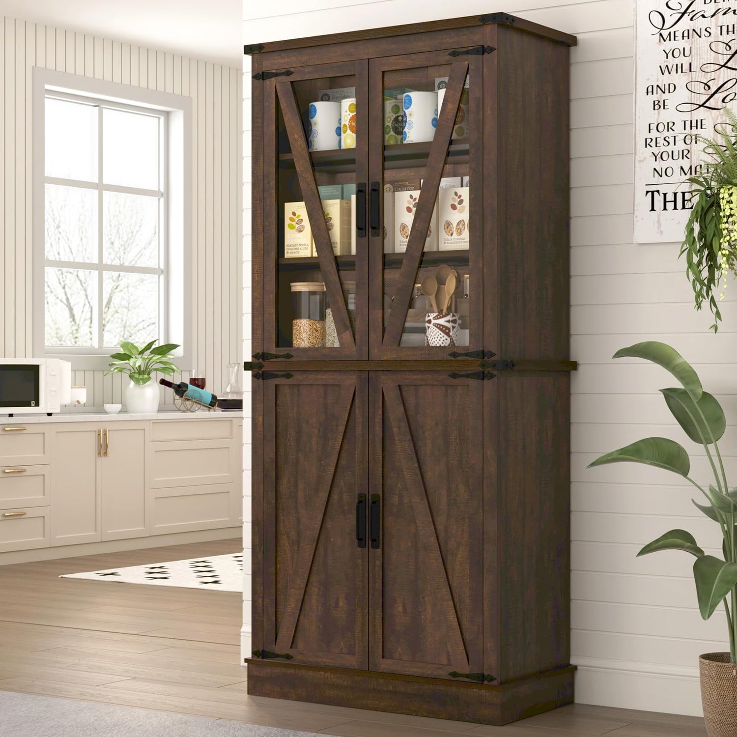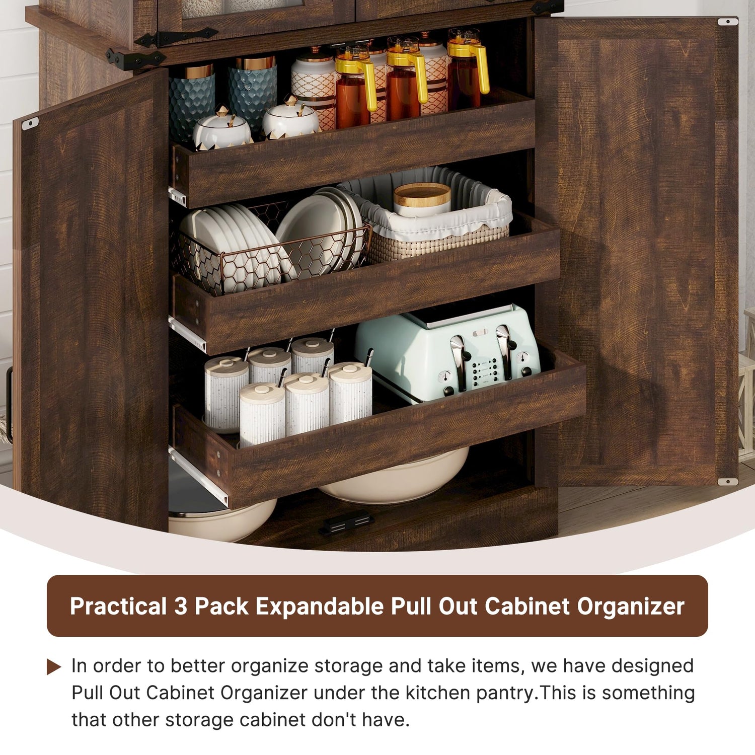71" Tall Kitchen Pantry Cabinet with 3 Pack Pull Out Drawers for Cabinets,Farmhouse Storage Cabinet with Load-Bearing Steel Pipe,Pantry Organizers and Storage for Kitchen,Dining Room(Antique Brown)