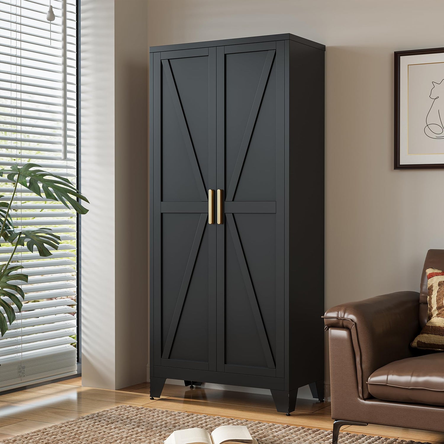 - Rustic Farmhouse Design: The door panels of this metal cabinet feature a charming farmhouse design, blending traditional elegance with modern practicality. The aesthetic appeal of the cabinet makes it both a functional and decorative piece