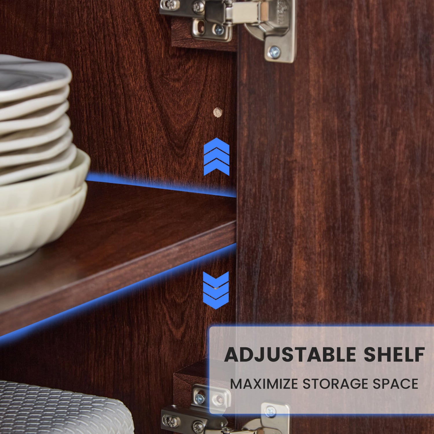 - Flexible Storage with Adjustable Shelves — Customize your storage with the spacious upper and lower cabinets, including a height-adjustable shelf that accommodates taller bottles, cookware, or baking supplies. The central drawer provides a convenient place for cutlery, utensils, or napkins. This practical configuration supports use as a food pantry cabinet, coffee bar cabinet, or buffet cabinet, giving you flexibility for daily kitchen organization