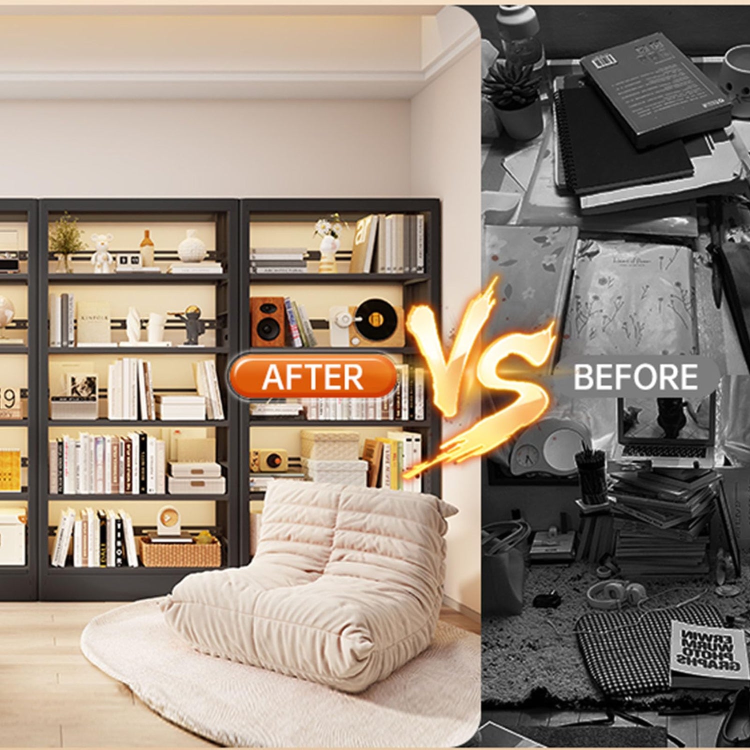 - 【Multi-functional application scenarios】The simple and elegant modern design of this bookshelves makes it perfectly suited to a wide range of décor styles. It can be used not only as a living room bookshelf, but also in bedrooms, offices and libraries.