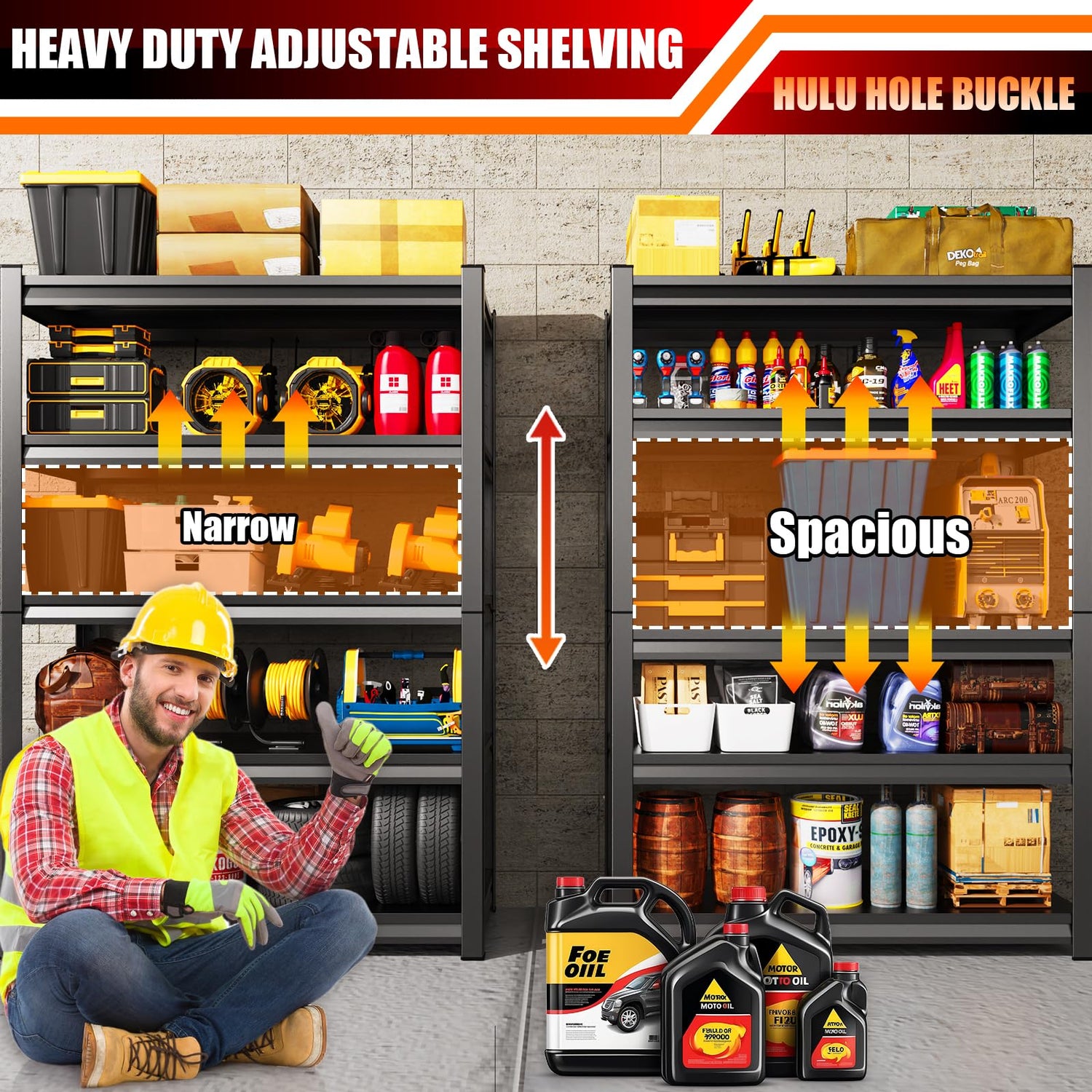 - Adjustable Storage Shelves & 10-Minutes Assembly:Designed with adjustable metal shelves' height, you can customize the garage shelves' spacing to accommodate items of varying sizes.The DIY combination functionality allows you to customize your storage needs.The garage shelving heavy duty are interlocking design, no screws and nuts are needed for installation, you can assemble the metal rack in 10 minutes. We provide you with installation tools such as rubber hammers gloves and detailed installation instructions to help you understand easily and install quickly.
