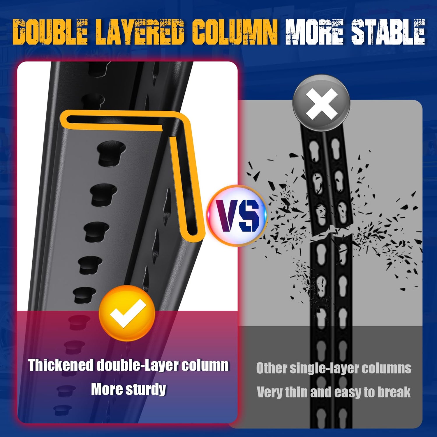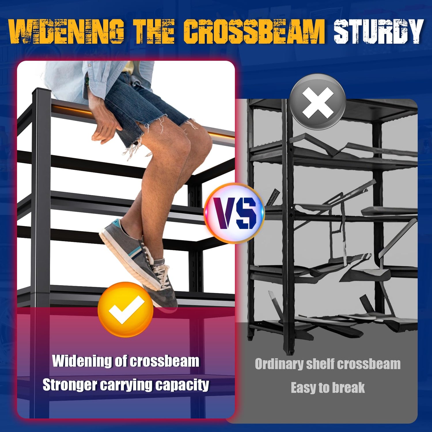 - 3000 LBS Garage Storage Shelves Heavy Duty : The heavy-duty garage shelving units are constructed with thickened heavy-duty steel columns, which provide a solid support foundation for the shelves and significantly enhance the overall stability. Each shelf can bear a weight of up to 600 pounds, and the total load-bearing capacity of the entire shelving unit reaches 3000 pounds, easily meeting the storage needs of various heavy-duty goods