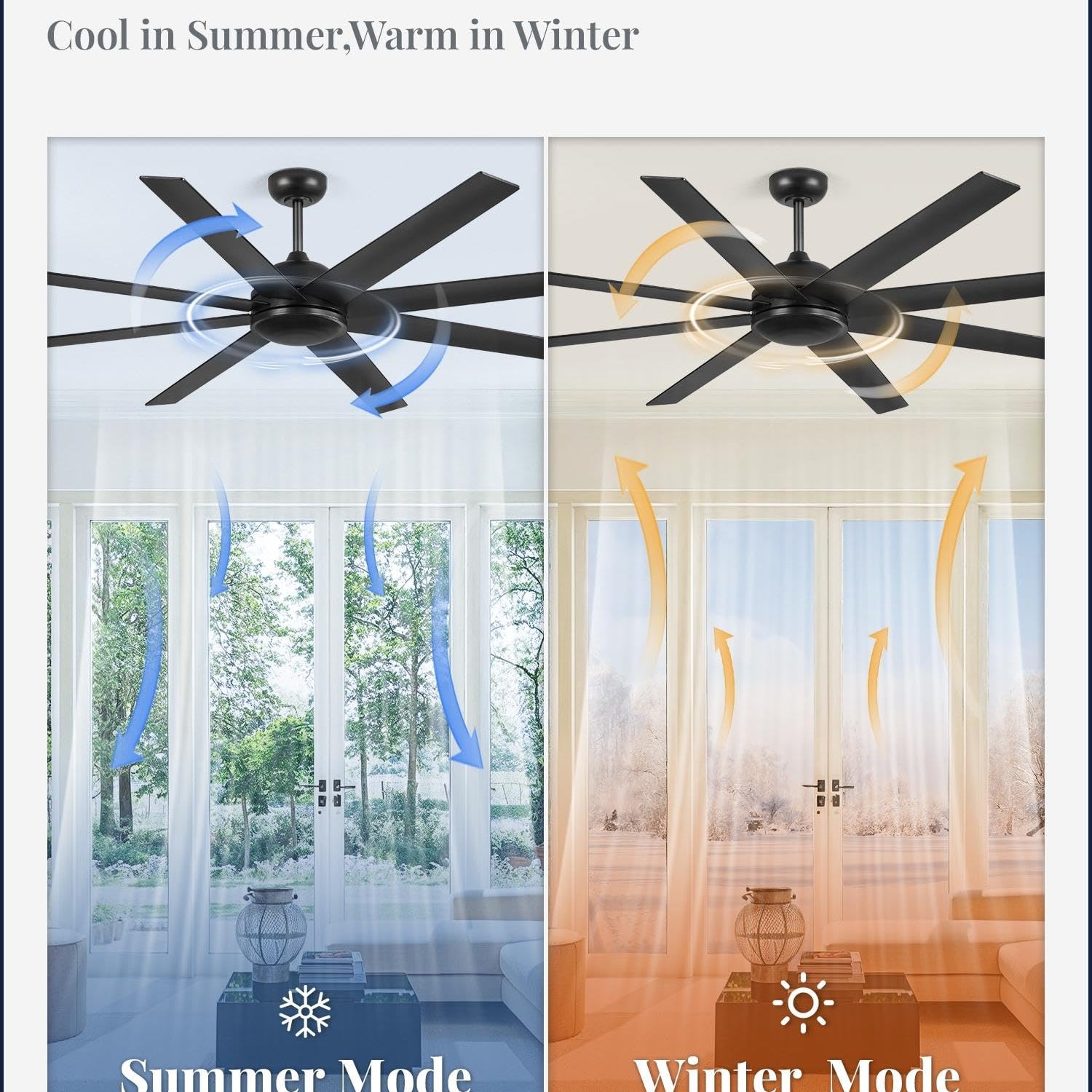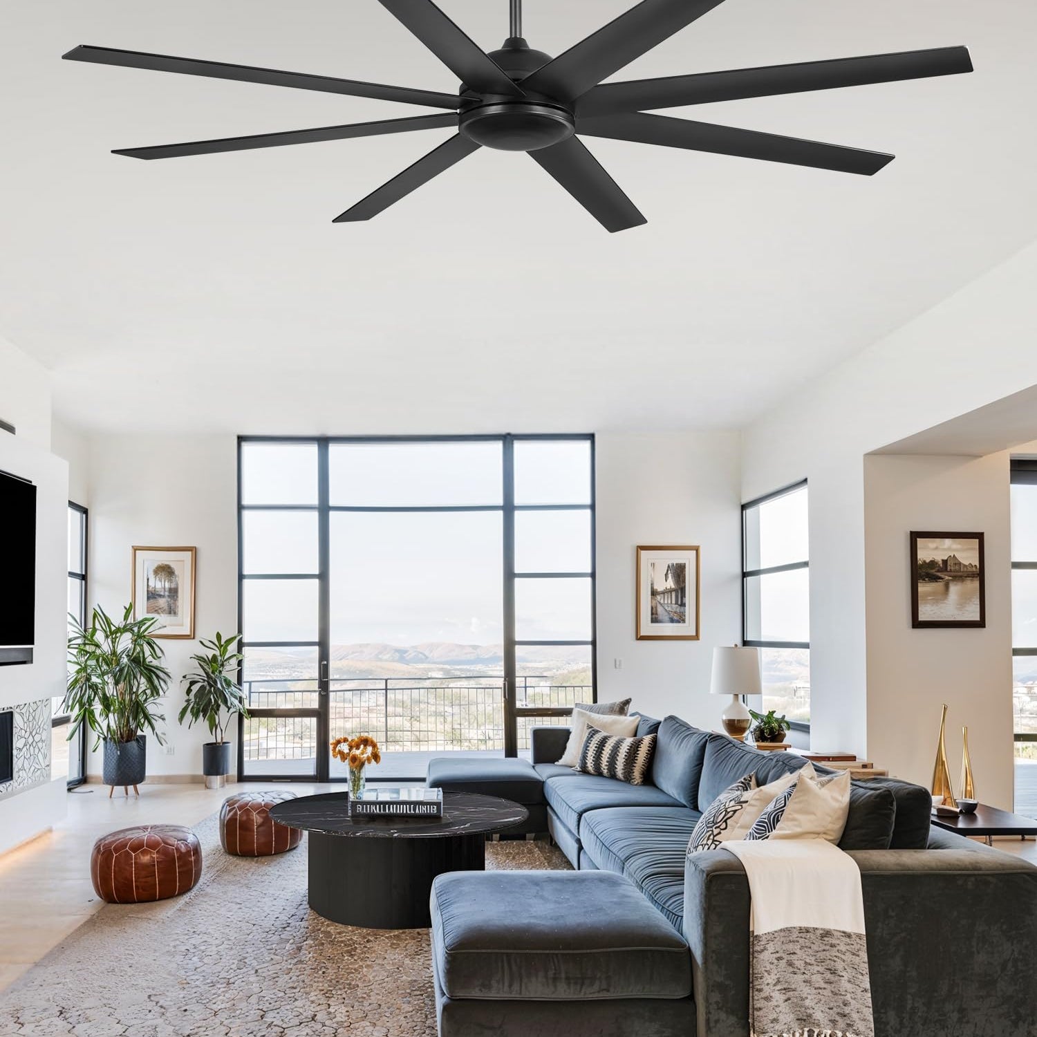 - Energy-Saving and Quiet Motor: Compared to AC motors, the DC motor is more energy-saving. This large room ceiling fan operates at a noise level of 30dB while maintaining strong airflow. 30dB is equivalent to the sound of footsteps walking softly. And it ensures an undisturbed sleep.