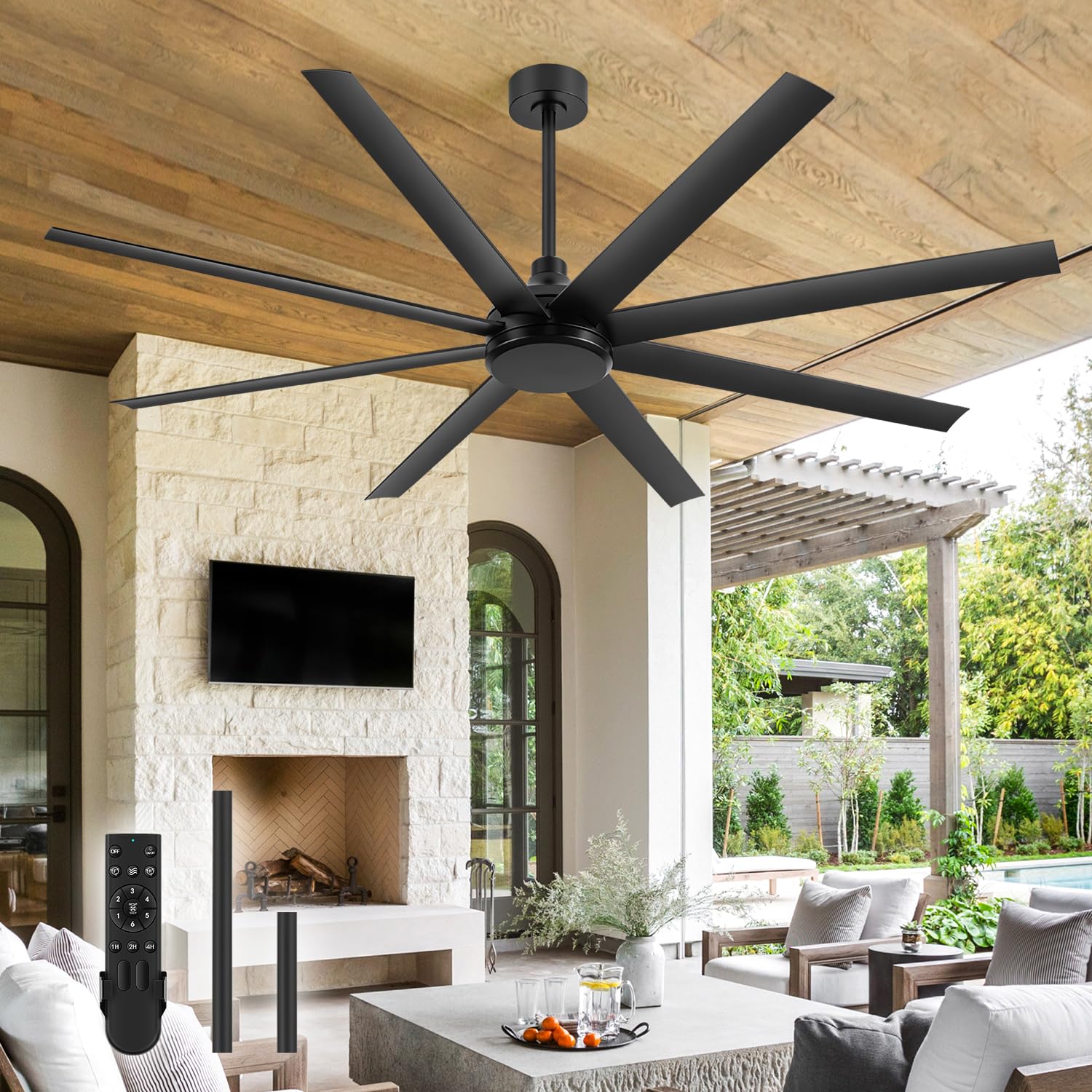 72 inch Ceiling Fans without Light Remote Control, 8 Reversible Blade, Quiet DC Motor, Timer Function, 6-Speed, Industrial Ceiling Fan No Light for Bedroom Home Kitchen (Black)