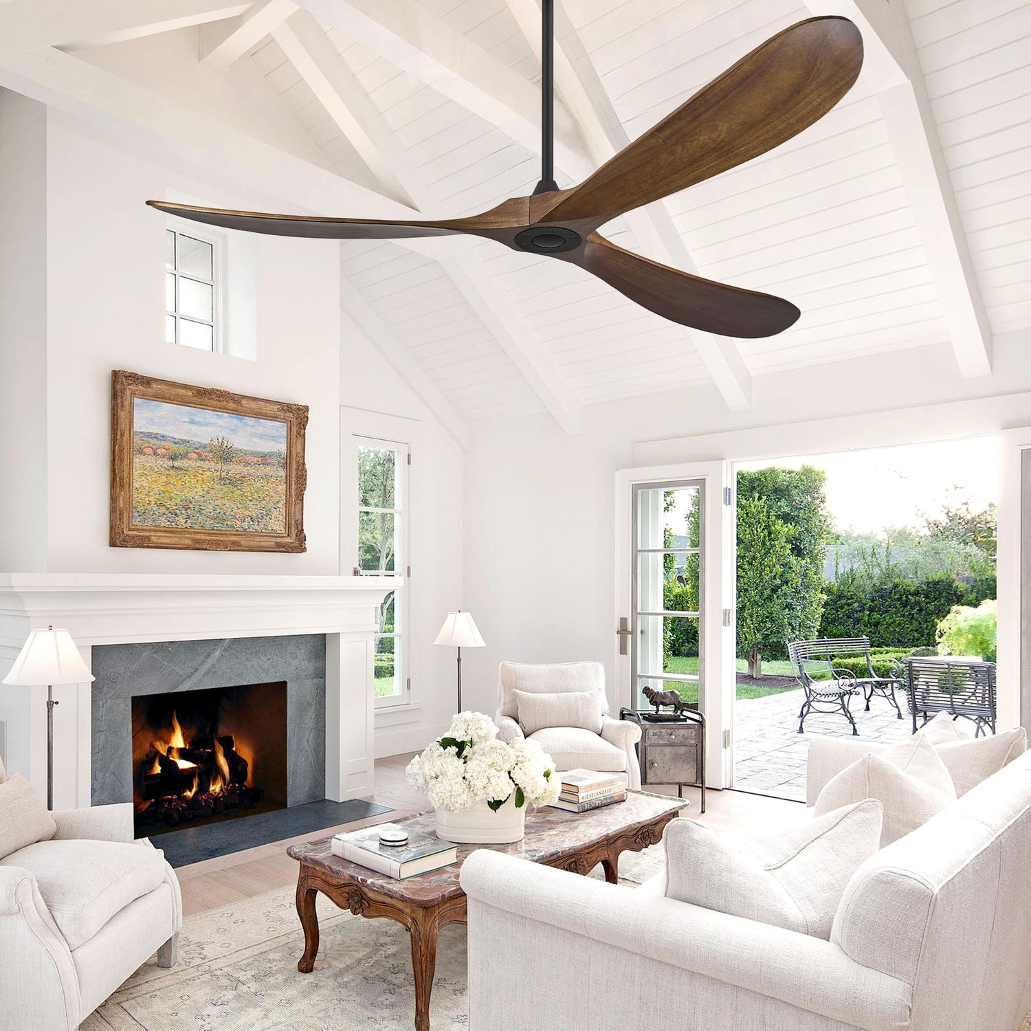 - 【SOLID WOOD FAN BLADES】This indoor/outdoor ceiling fans without light, the 3 blades are carved from walnut that has been grown for over 20 years, with clear texture finishes, rigorous handcraft process, and smooth and delicate surface. With an aerodynamic design, all the blades have gone through hundreds of professional balanced tests to ensure the fan spins stably