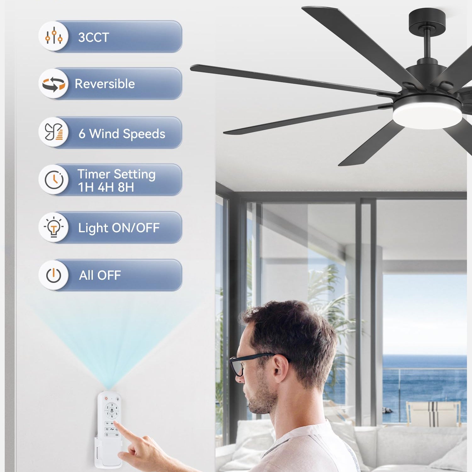 - 6-Speed Remote Control: Our remote control ceiling fans offer 6 adjustable fan speeds, providing a stronger airflow. It can meet the needs of various scenarios such as sleeping, reading, and exercising. Our multifunctional remote control can easily adjust the 6 fan speeds, 3 color temperatures, memory color temperature, timer settings (1/4/8 hours), and forward/reverse rotation. It allows you to adjust the fan and light anytime, saving your time and effort.