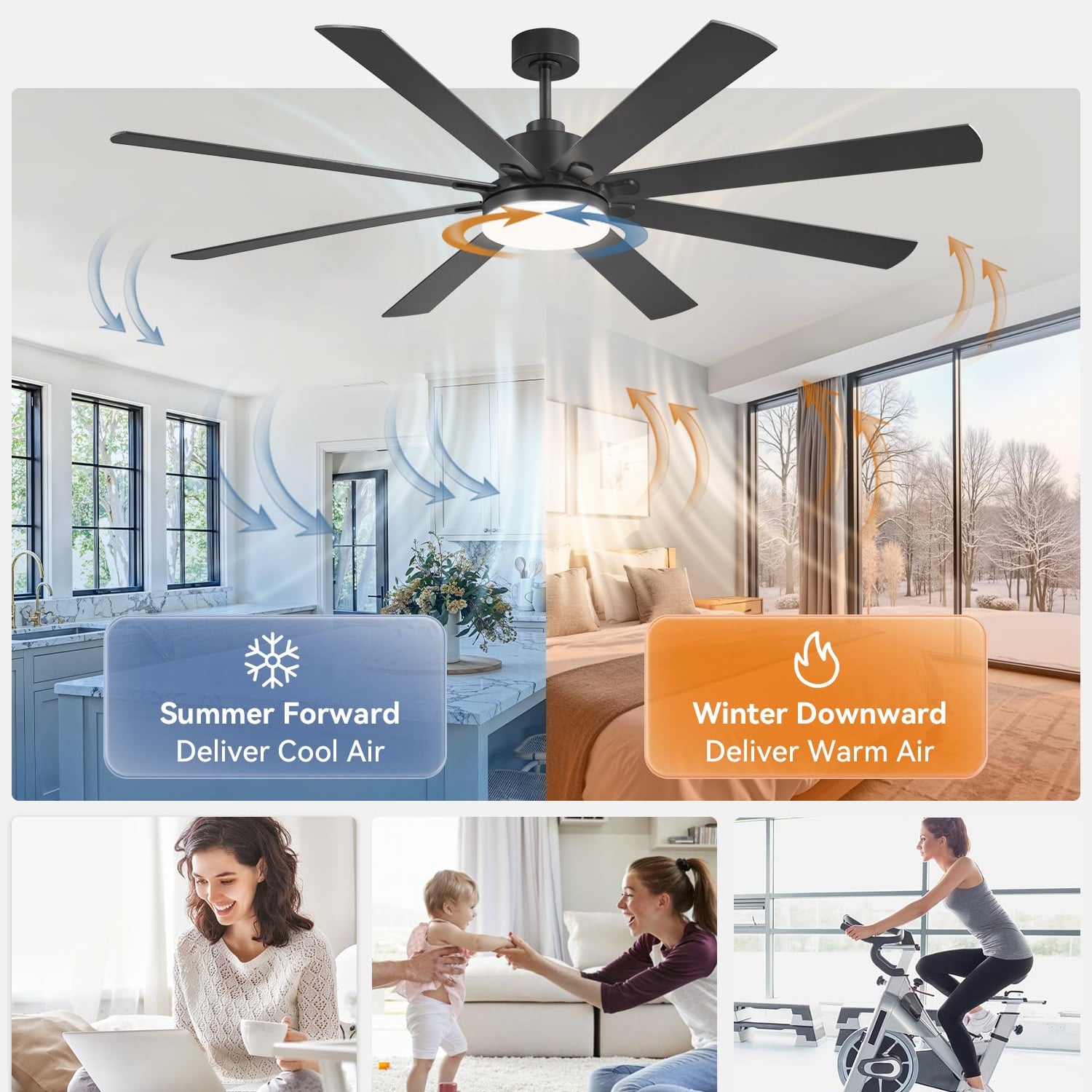 - Reversible DC Motor: The forward/reverse function provides comfortable airflow year-round, delivering cool airflow in the summer and warm airflow in the winter. It enhances the airflow in the room, maximizing the efficiency of the ceiling fan. This industrial ceiling fan with light is equipped with a high-quality DC motor, which is quieter and more energy-saving than an AC motor, with a noise level of less than 30 dB.
