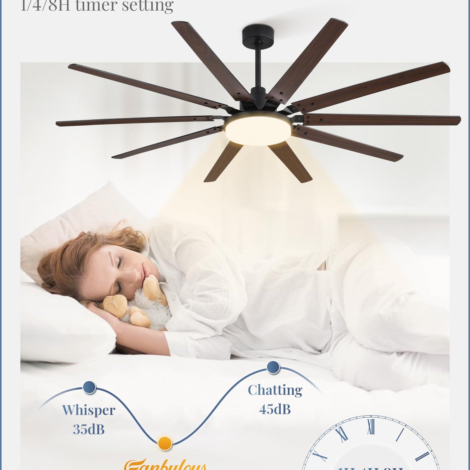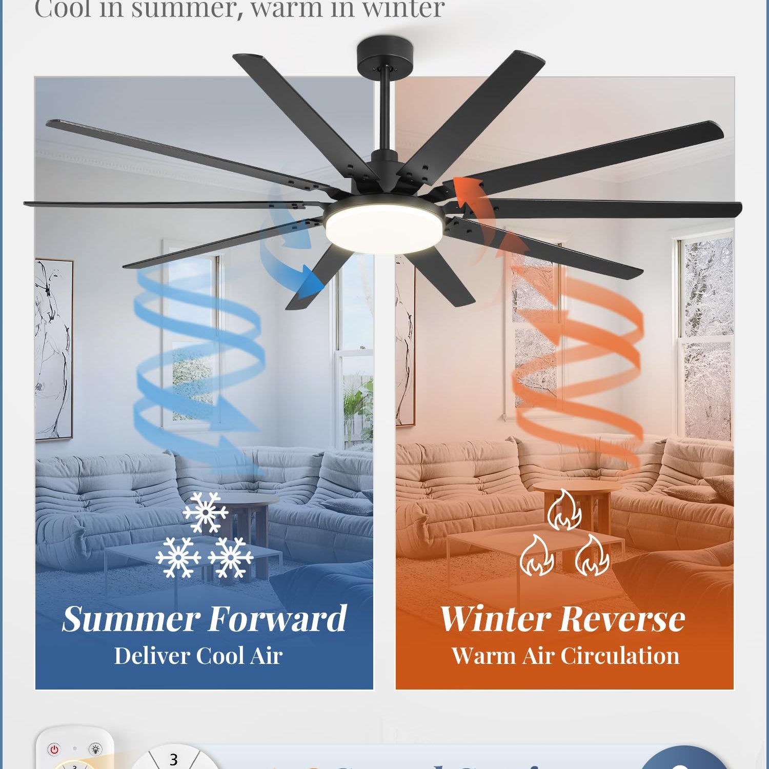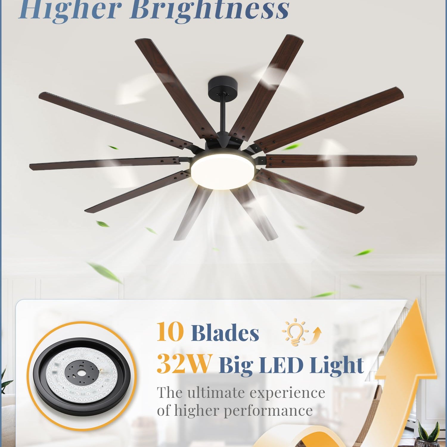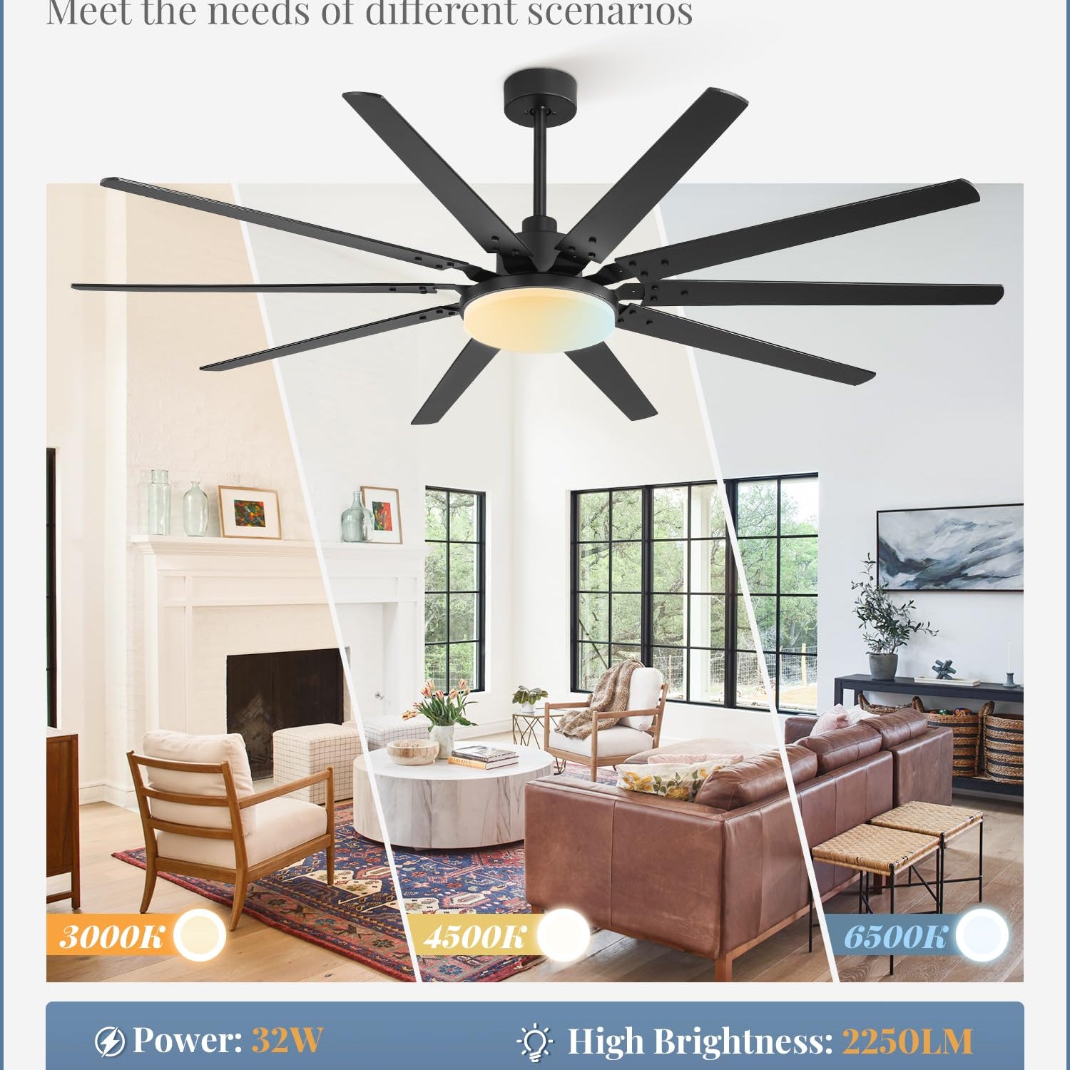 - 72-inch High Brightness Ceiling Fan: This 72 inch ceiling fan features a large light panel design, with a powerful 32W LED light and bright 2250LM light, which can bring more abundant light to your space. Perfect for living room, garage, covered patio