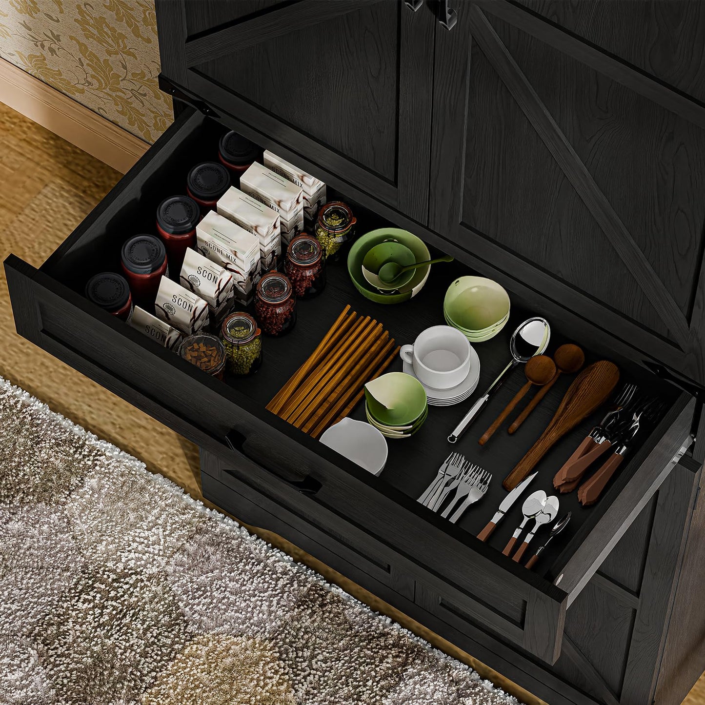 72" Kitchen Pantry Storage Cabinet, Farmhouse Storage Cabinet with Adjustable Shelves, Large Capacity Storage Cabinet with Drawer,Freestanding Cupboard for Kitchen, Dining Room, Living Room, Black