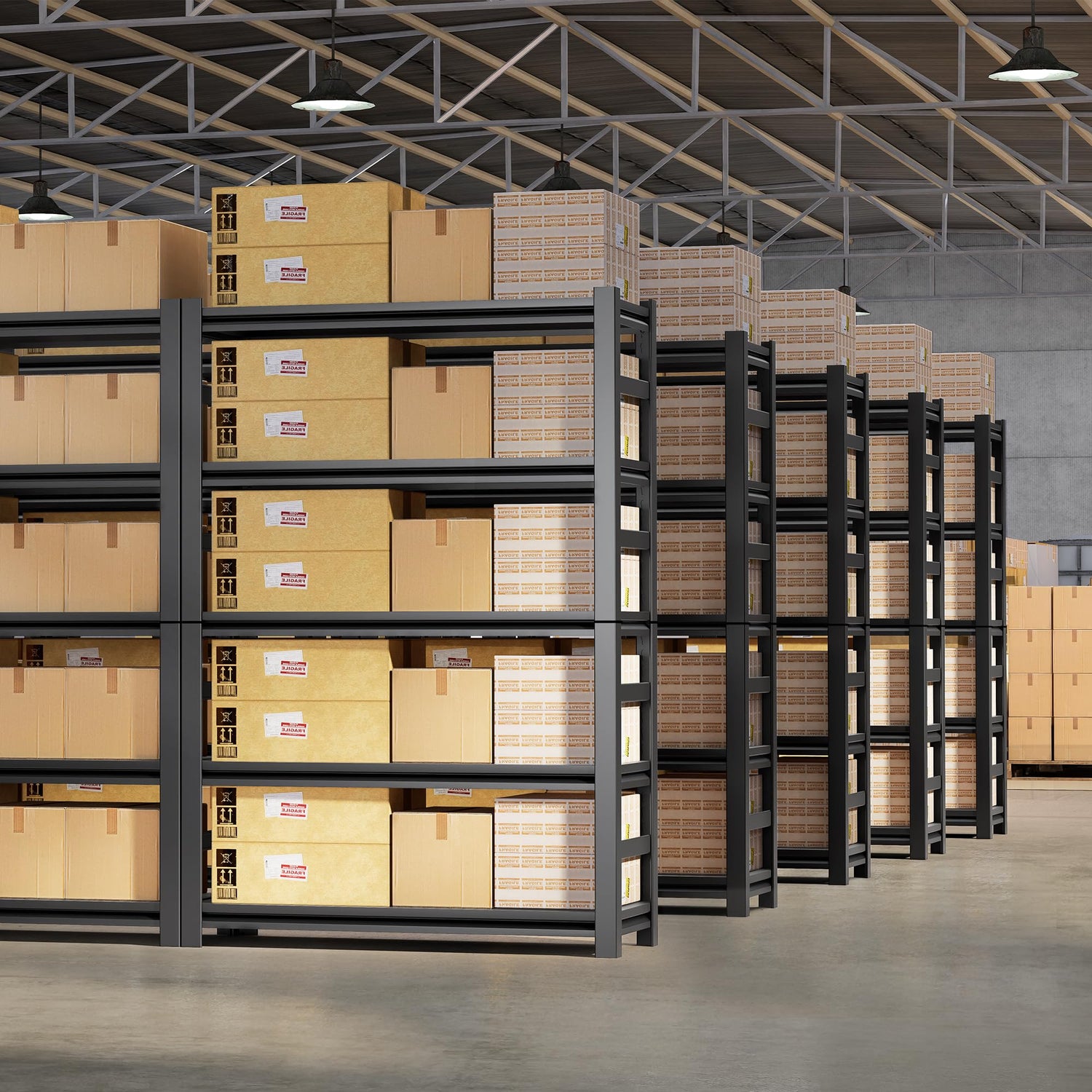 - 【Anti-Fall Safety Rails for Secure Storage】Each level of shelving has specially designed fall protection safety rails. These guards prevent items such as heavy tools or boxes from falling. They are ideal for busy garages or warehouses to prevent items from sliding off due to bumps or crushing. This reduces the risk of items falling to the floor and increases the safety of your items and workspace.