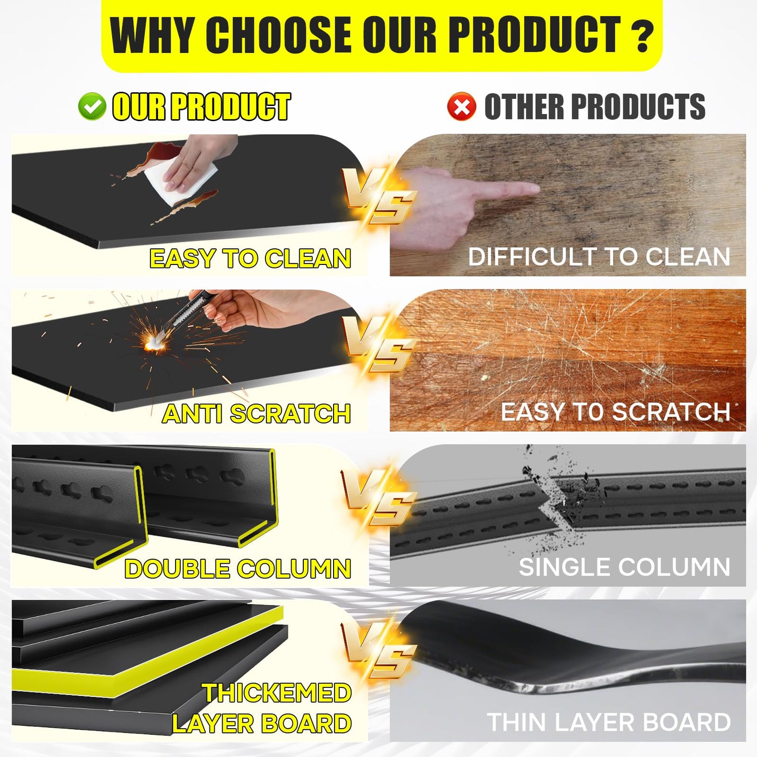 - Upgraded Double-Layer Columns for Enhanced Stability: Unlike ordinary garage shelves on the market that use single-layer columns, our product features upgraded double-layer columns, which significantly boost the stability and load-bearing capacity of the garage rack. The reinforced structure evenly distributes weight, reducing the risk of deformation or sagging during long-term use—ensuring the shelf remains stable even under heavy loads. In contrast, shelves with single-layer columns may wobble or bend when storing heavier items, making them unsuitable for holding large, heavy tools or materials