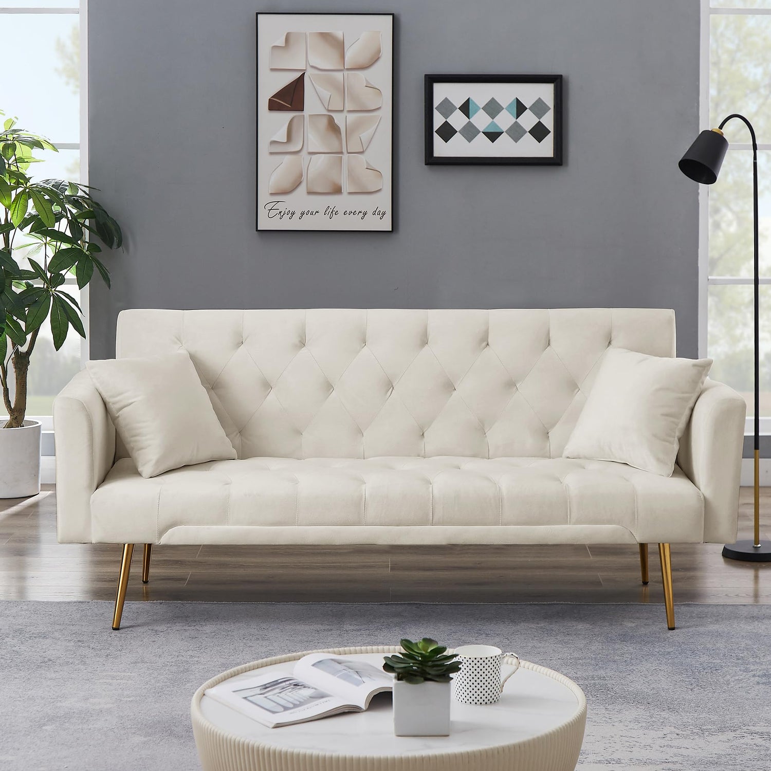 - πΎπππππππππΌππ πππππ ππππΌ π½ππΏ:Modern classic design with popular tufted back & seat,well-distributed stitching makes it more comfortable. Its line is simple but retro,tapered metal legs,this modern sofa bed makes the household environment of small living spaces more optional.perfect for your apartment or office to improve the comfort of life and work.