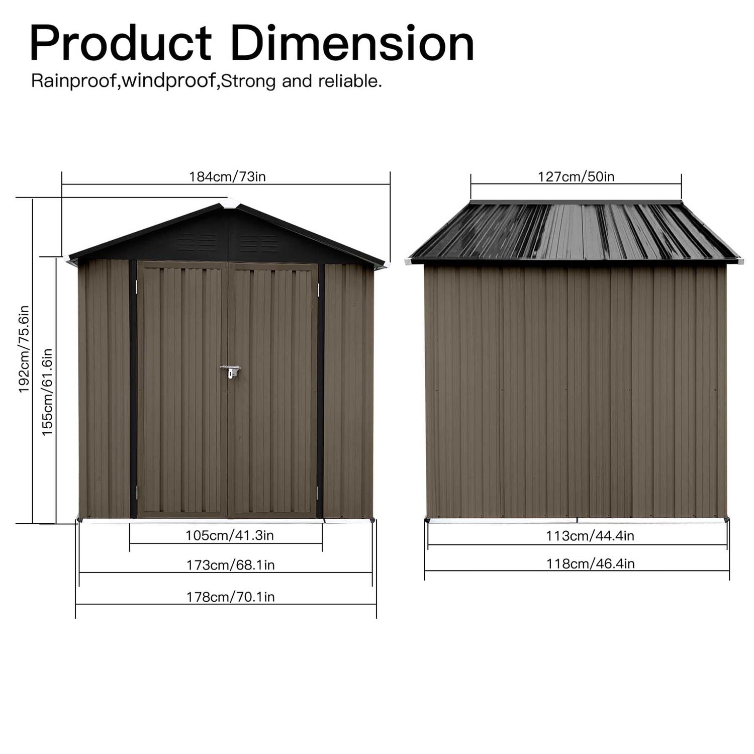 73” Outdoor Storage Cabinet with Lockable Door, 4FTx6FT Metal Storage Shed for Patio Garden, Apex Roof, Easy Assembly (Brown)