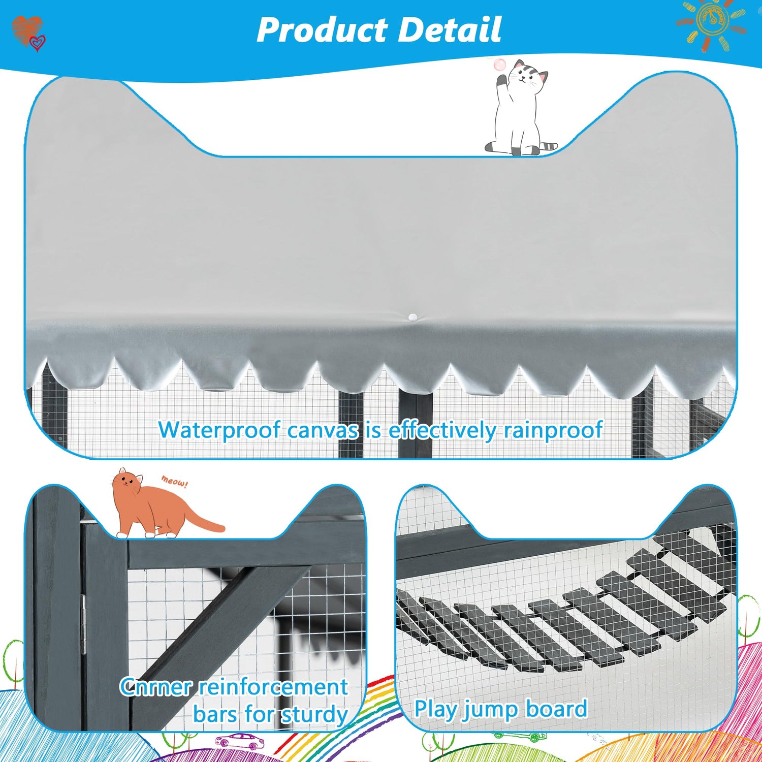 • 【Weatherproof】 Our catio features a detachable waterproof roof cover, providing effective protection against wind and rain, and shielding your cats from harsh weather conditions. Our extra large catio provides waterproofing and UV resistance, keeping your furry friends cool and shieldeding from harsh weather conditions like wind, rain, and snow.