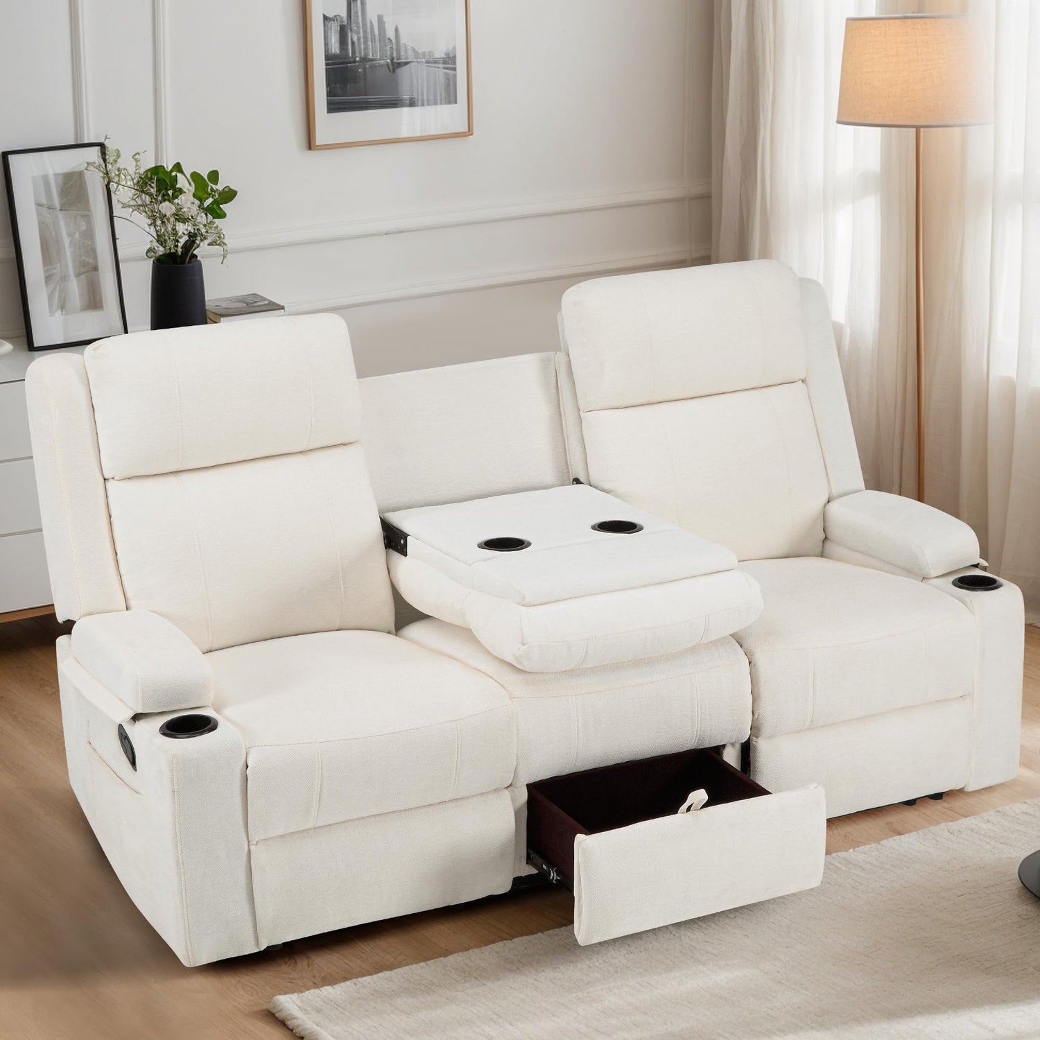 - Dual Cup Holders & Central Armrest Convenience Relax with your drink right where you need it. The two built-in cup holders offer spill-free sipping during movie nights, while the padded center armrest doubles as a comfort station or compact work surface.