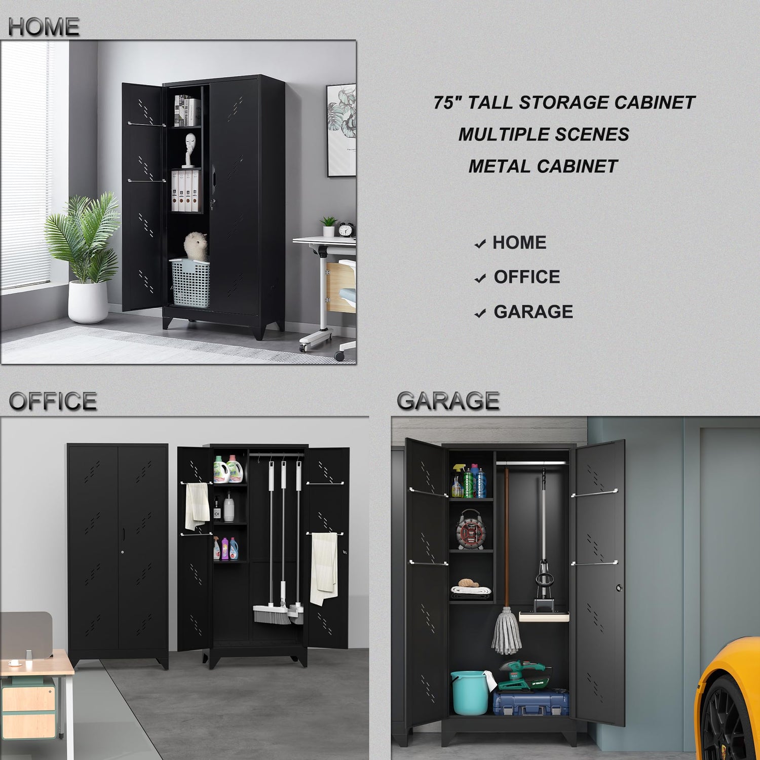 - Multi-scene Multi-purpose:Why choose our storage cabinet? π’π‘π:75" tall , taller than other metal cabinet. π§πͺπ’: Higher vertical space to store large items, such as mops, brooms, fishing rods, buckets, shovels, etc. π§ππ₯ππ: There are 10 ventilation holes on the cabinet to keep the inside dry. ππ’π¨π₯: Stainless steel leaky holes at the bottom, anti-rust. πππ©π:Locker with 2 keys.You can use it in the office storage room, garage, home, warehouse,laundry room storage,storeroom.