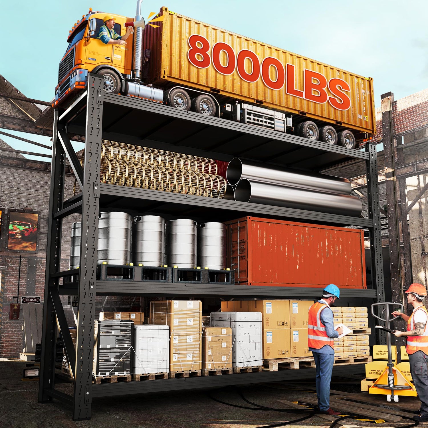 - 【HEAVY DUTY ALL METAL GARAGE SHELVING】 The heavy-duty garage metal shelves are engineered with Integrated column design that offer superior structural integrity. This design ensures maximum stability and load-bearing capacity, even under the most demanding condition. each solid thickened metal shelf with 4 big ribs beneath can hold up to 2000 lbs, providing a total load capacity of 8000 pounds across 4 tiers which makes AFAIF metal shelving more stable and solid than wood board or mesh rack shelf.