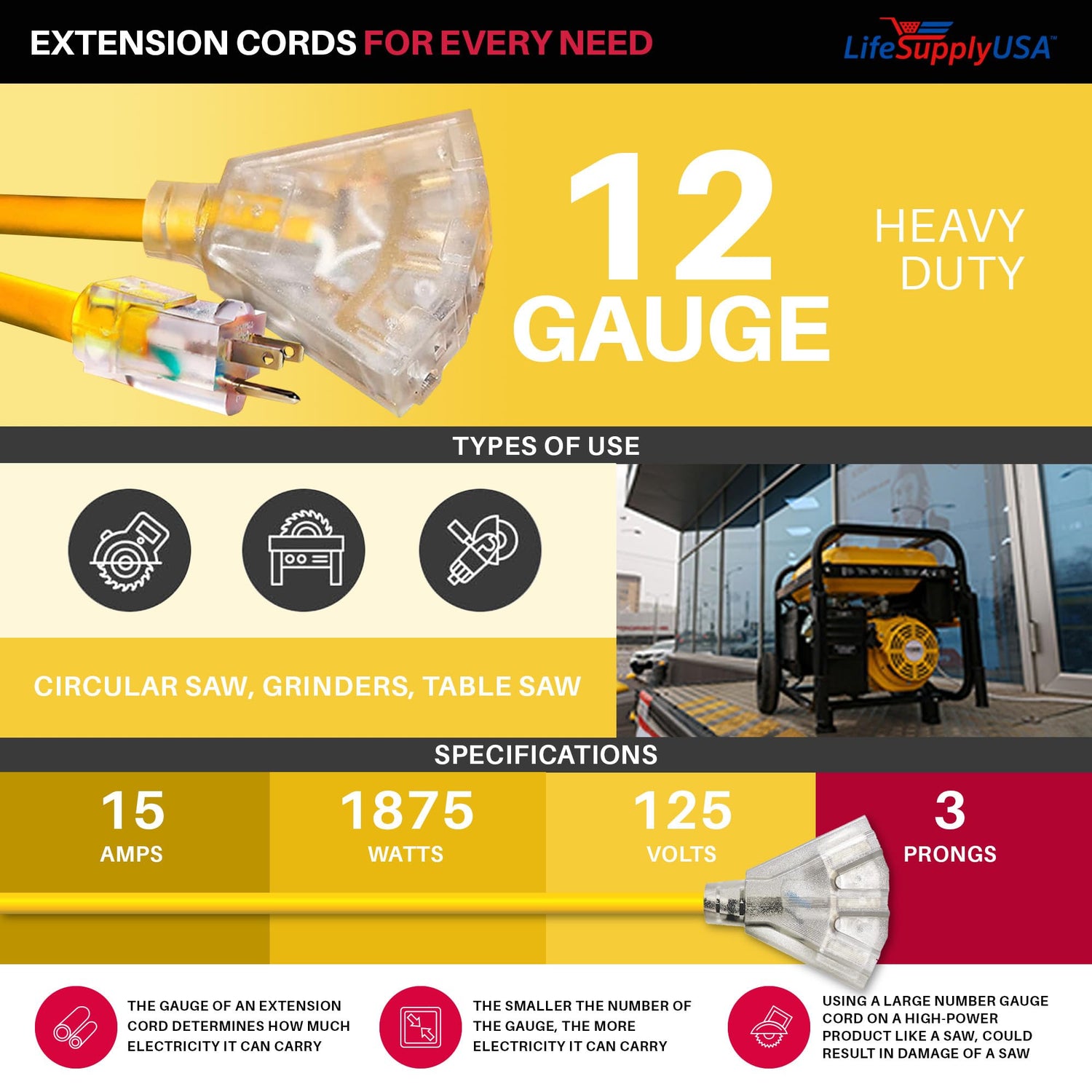 - LONG LASTING PERFORMANCE: Engineered to endure harsh conditions, this heavy duty extension cord remains resilient against extreme temperatures. With a superior indoor / outdoor extension cord waterproof design, it offers unmatched durability and reliability for home, work, or construction needs. Ensure long lasting performance with LifeSupplyUSA extension cords in any setting.