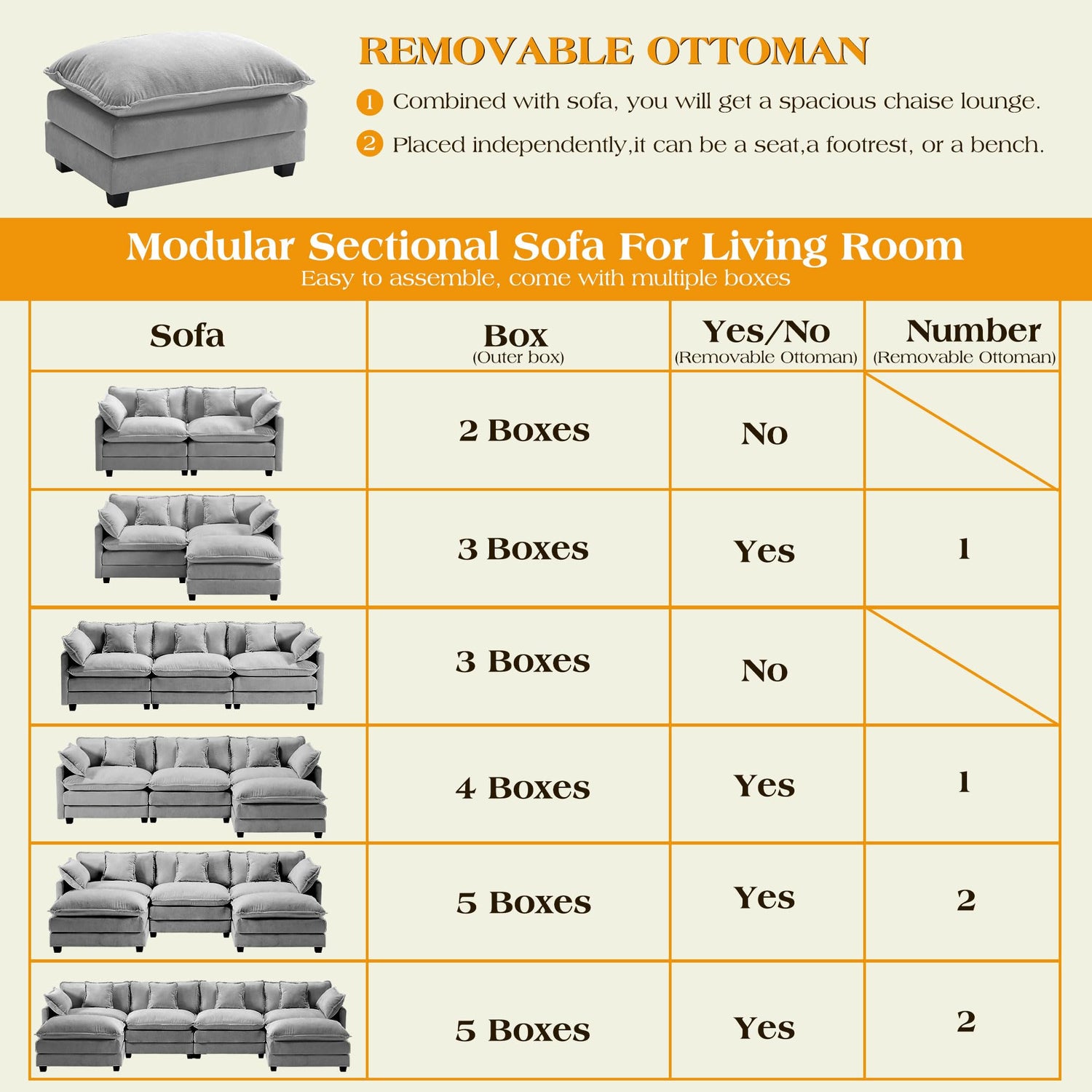 - 【Modular Sectional for Flexible Rearrangement】Each component of this sofa set is designed as an independent unit, allowing for easy movement and rearrangement to suit various room layouts. This versatile furniture can be placed in the living room, guest room, or basement entertainment area. The modular design of the sectional sofas accommodates a wide range of settings and gathering requirements.