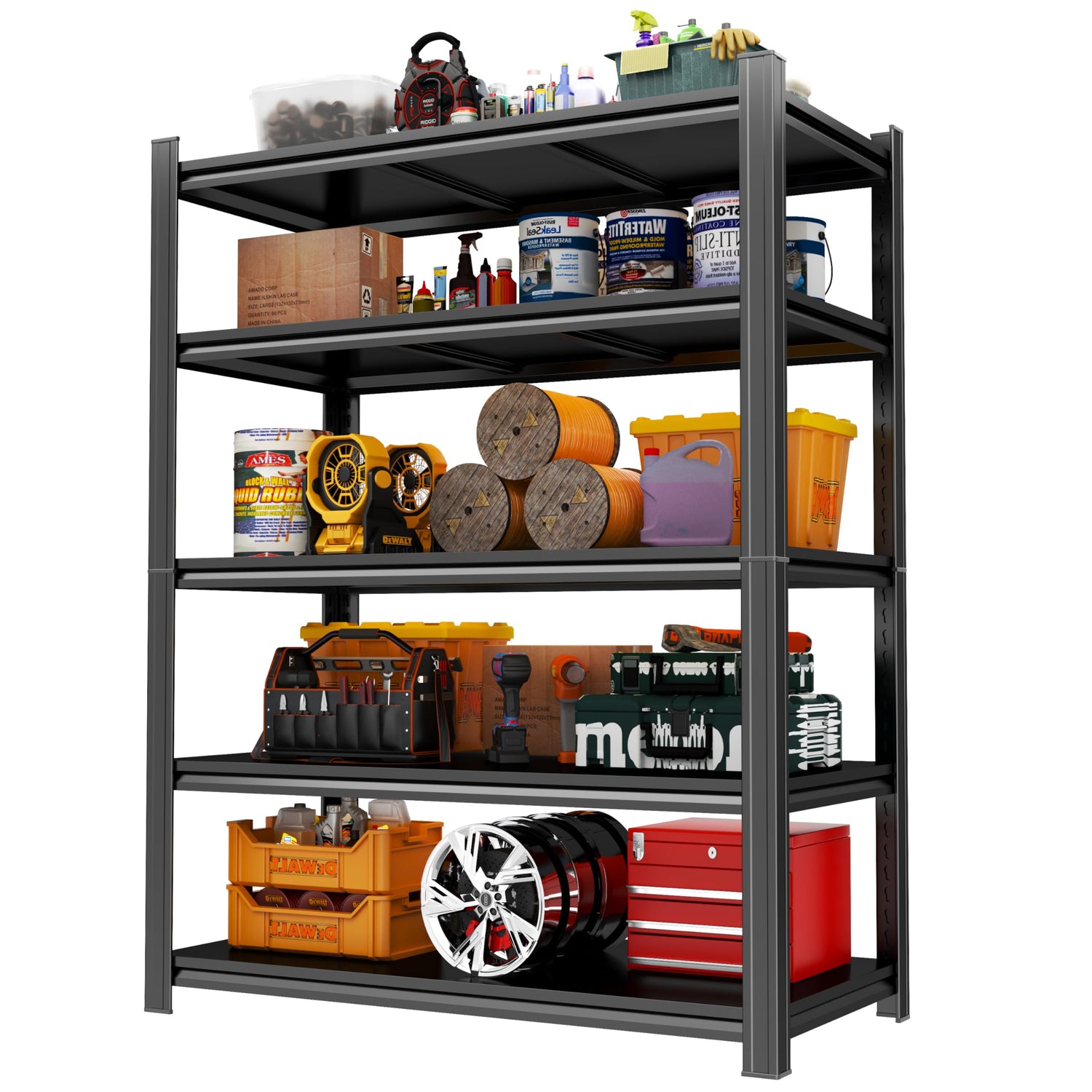 78" H Garage Shelving, 2500 LBS Heavy Duty Storage Shelves, Adjustable 5 Tier Metal Shelving Unit, Standing Shelf for Storage, Industrial Metal Utility Shelves for Workshop, Basement, Home Office