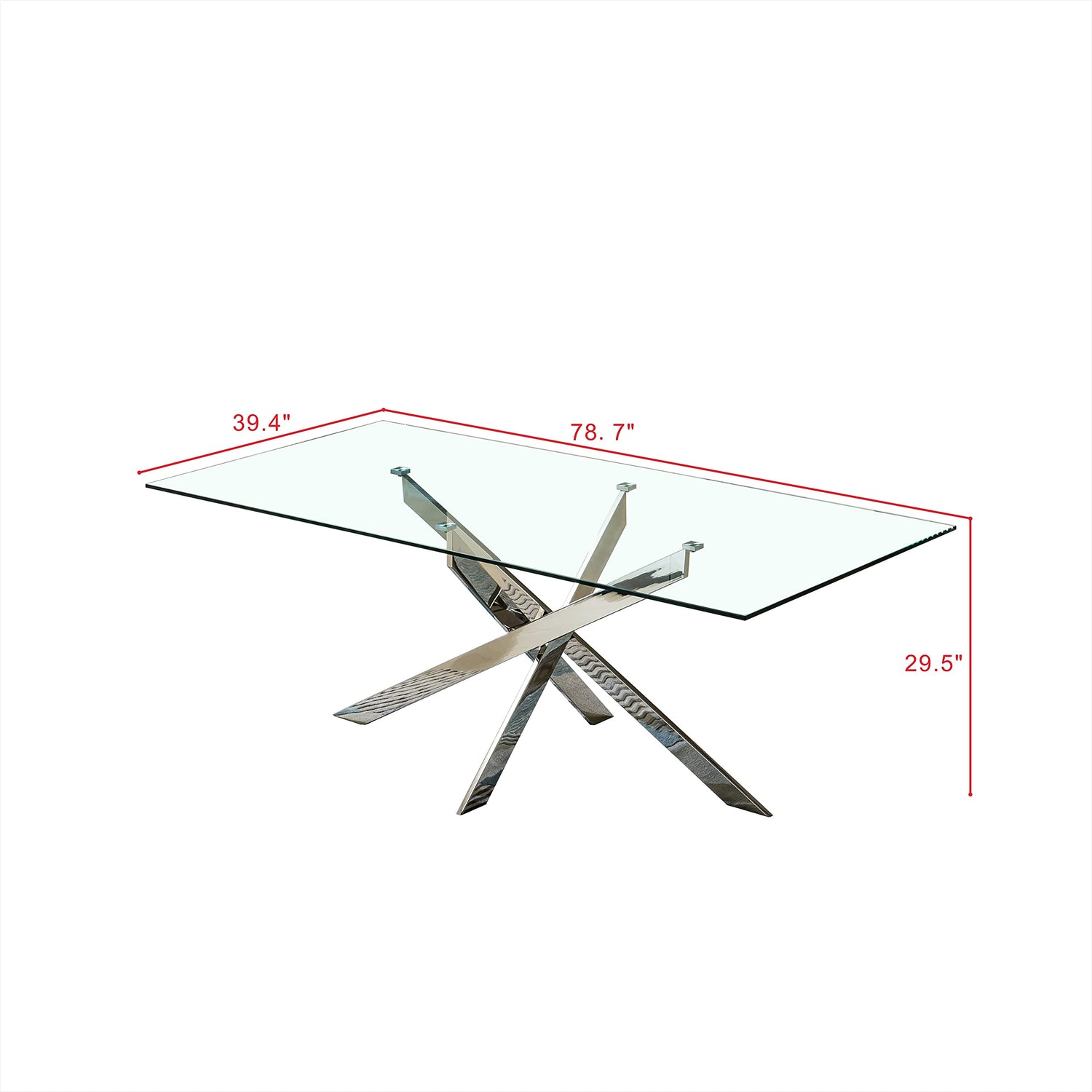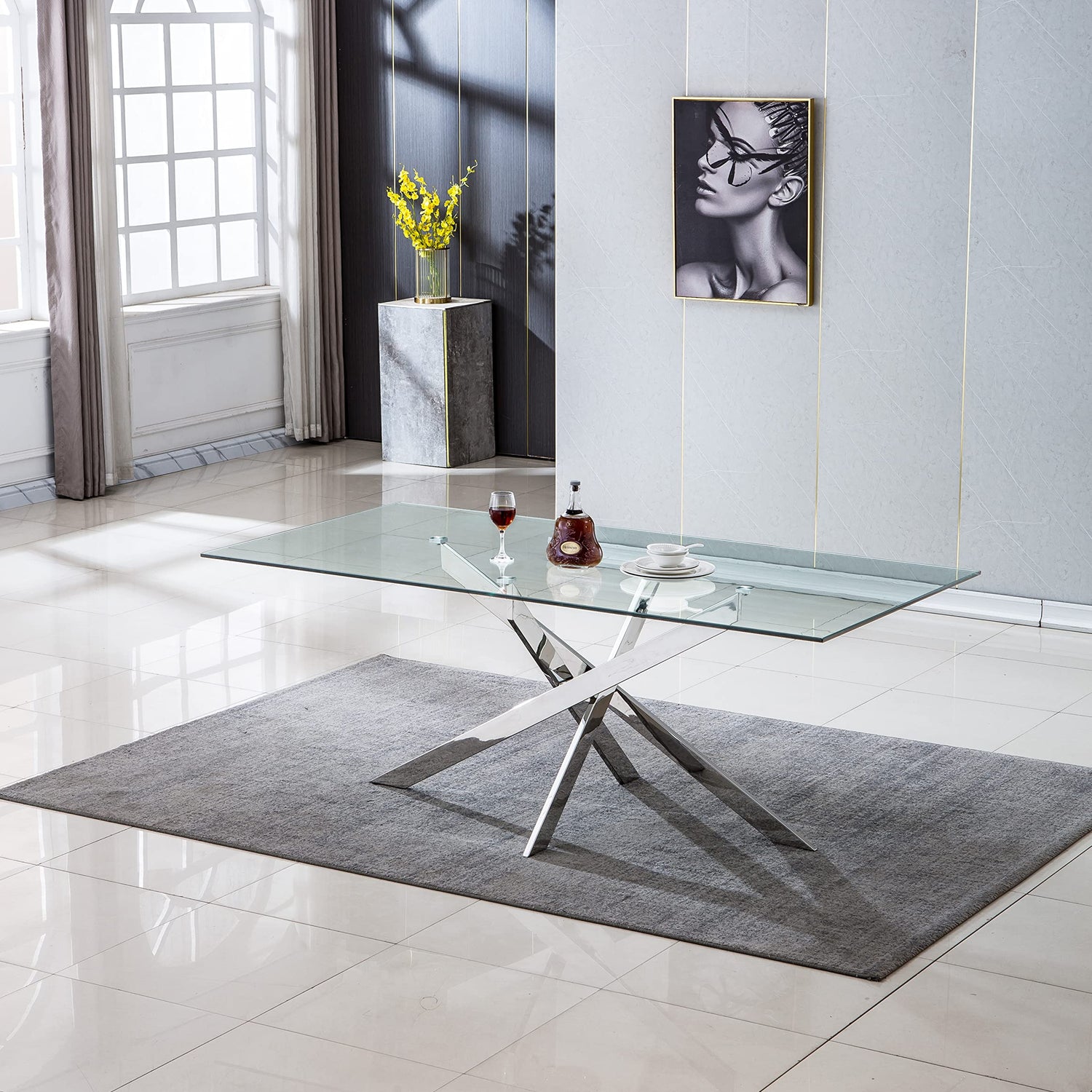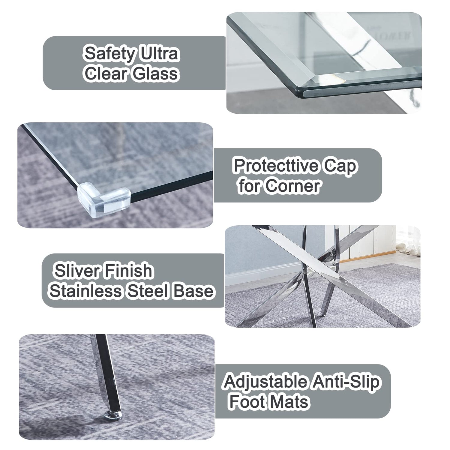 - 【Exquisite Appearance】: The elegant dining room table has 0.39" thick rectangular tempered glass table top and silver mirrored stainless steel base,clean lines and stylish look suitable for any kitchen, dining room, cafe, and other places.