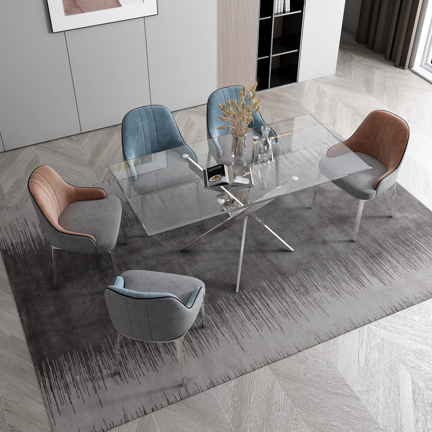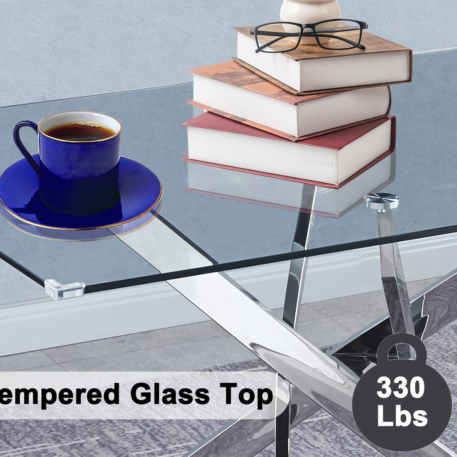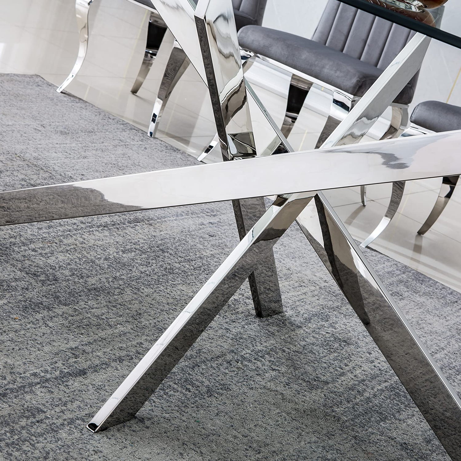 - 【Exquisite Appearance】: The elegant dining room table has 0.39" thick rectangular tempered glass table top and silver mirrored stainless steel base,clean lines and stylish look suitable for any kitchen, dining room, cafe, and other places.
