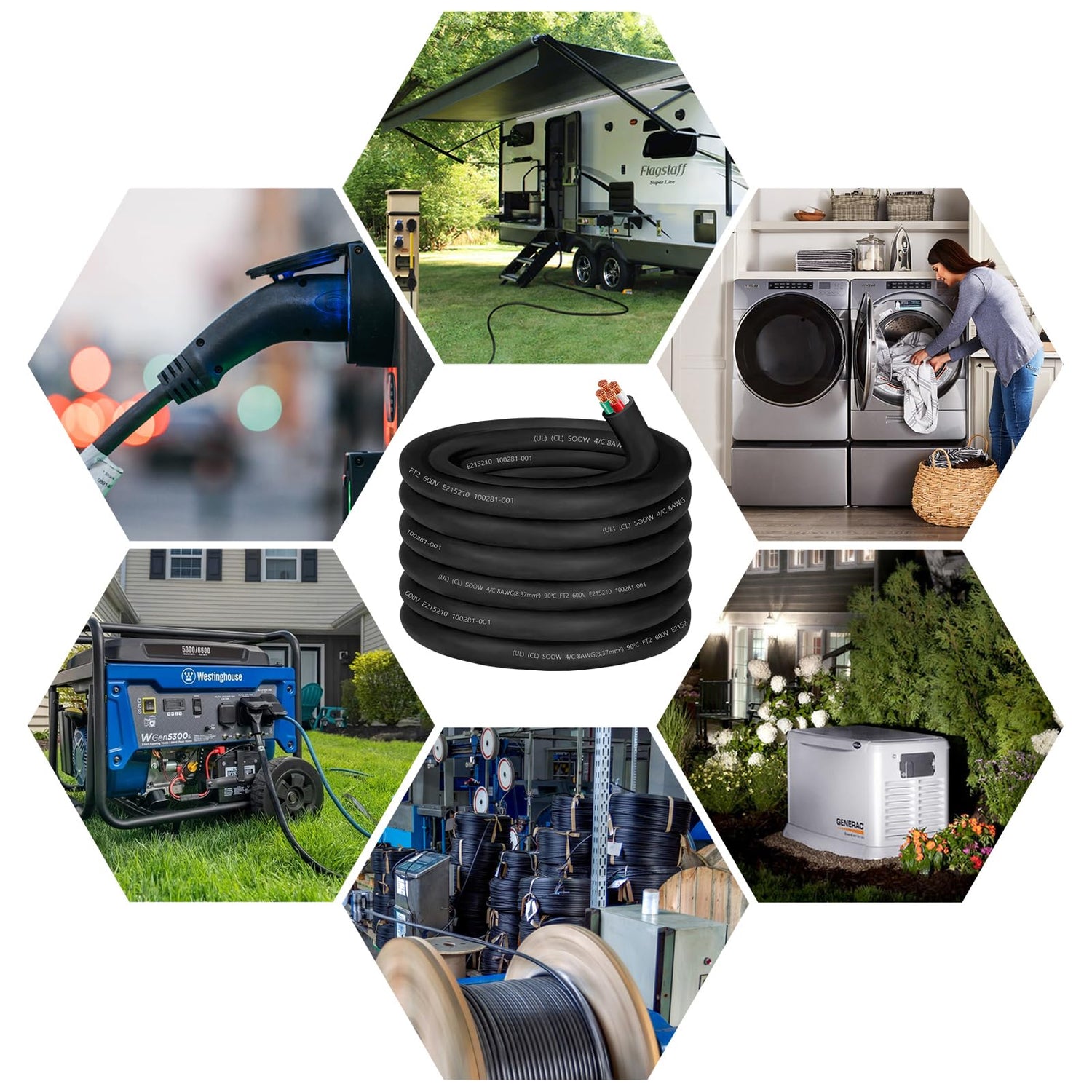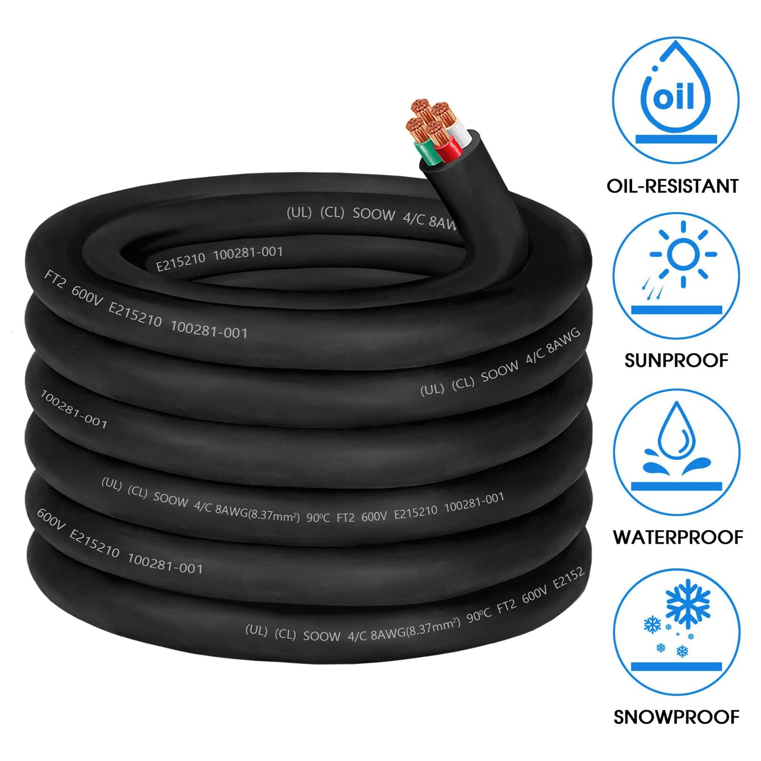 - Safe 8 AWG SOOW portable power cable: The 8 gauge 4 conductor OFC wire (OFC-Oxygen Free Copper) meets UL standards (UL E1215210), provides greater electrical conductivity, and the 600V SOOW electrical cable cord wire rating without overheating or damaging electric 8/4 SOOW cable for ensuring safety and durability in all situations.